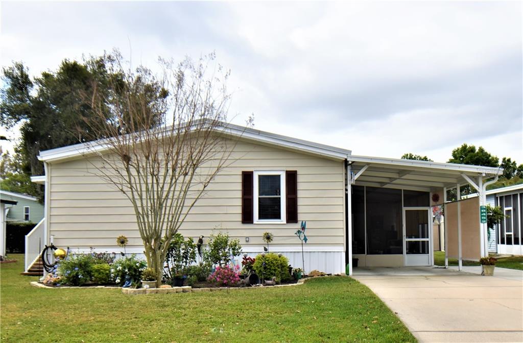 You've seen the rest, now look at the best! move in ready and upgraded is an understatement with this home! 3 bed, 2 bath plus amenities galore. as you enter the home you see the vaulted ceiling, molding/casing around all windows & doors, wood look beams and wainscotting in many of the rooms w/ chair rail. the dining room has a built in china hutch w/ cabinets. the kitchen offers updated cabinets, back splash, movable island perfect for food prep, double sink and so much more! the living room is huge! enjoy watching tv and looking at the electric fireplace...it has several settings & features. there are built in cabinets and shelves here. the master suite is the perfect retreat: large bedroom and 11x11 bath that boasts a high vanity w/ tile counters, dual sinks, linen cabinets and 27 sq ft walk in closet. the other 2 bedrooms are in the front of the home and share the hall bath. both are large and have huge walk in closets: 30 sq ft each...storage abounds and you haven't even seen the workshop yet! the laundry room offers a walk in pantry, cabinets & even a hanging bar. the workshop isn't just a converted shed! it has a 9' ceiling and is 19x11! tons of room for projects and storage. the screened porch has solar tec shades here and on the carport...blocks the sun and protects your car. at the rear of the home there is a golf cart parking area...covered paver area which is 9x9 & there's electricity here too! the hoa is the lowest around...low fees and divine home...make your appointment today!Manufactured Home 3 bedrooms - SHADY OAKS