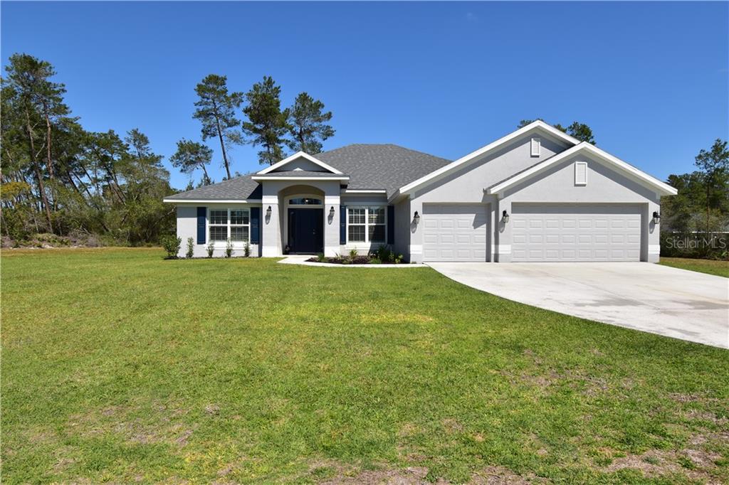 Welcome home to this like new home in ocala waterway on a beautiful .62 acre lot! with 4 beds, 3 baths, and den there is plenty of space for your office or virtual classroom. bring your toys - the 3 car garage is perfect for your vehicles and hobbies. in the attic there is added insulation for temperature control in the garage. the layout has a triple split floorplan allowing for privacy. one guest room also has private attached bath, which would work as a second owners suite. inside you will find plantation shutters throughout, an open concept floorplan beaming with natural light, a dining room as well as breakfast nook, and inside laundry. there are 3 doors to the covered lanai that have inside-the-door blinds. the large owners suite has a tray ceiling, two spacious walk in closets, walk in shower, soaker tub, and separate dual vanities. outside you will find a brand new water softener at the well, brand new sod, new expanded irrigation to cover the entire yard, and a fully cleared lot. this property is located near sw 49th ave trailhead, hospitals, shopping, and more. low hoa of only $50 per year! see link for 3d experience.Single Family House 4 bedrooms - OCALA WATERWAY