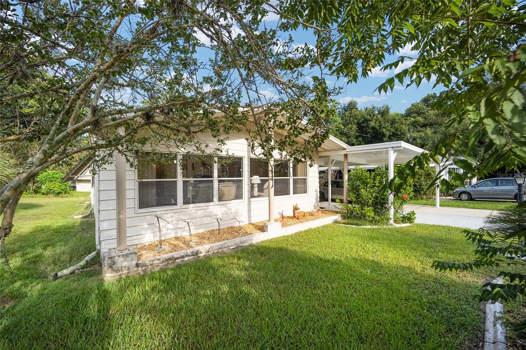 Unique manufactured situated on a cul-de-sac. double carport plus bonus rooms! enclosed lanai under heat and air which makes it so that you don't have to go outside for the laundry room plus there is an additional storage room and attached shed. two bedrooms and 2 bathrooms. tile flooring throughout the main living areas and carpeting in the bedrooms. vaulted ceilings. open kitchen with breakfast bar plus there is a lot of cabinets w/ slow close doors! lots of windows for added natural light and 2 skylights. mostly everything you see here stays. rolled-on rubber roof 2021 with a 15 year warranty. must see to appreciate.Manufactured Home 2 bedrooms - THE VILLAGES