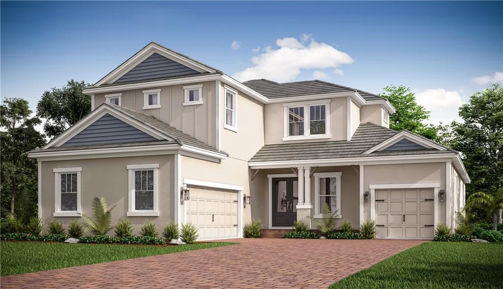 Under construction. located on an oversized pie-shaped home site with pond and preserve views, the tortola offers 3457 square feet with 5 bedrooms, 4.5 bathrooms, and a 3-car courtyard style garage. enter through a double glass door entryway into the foyer, featuring volume ceilings and a spindle staircase that is open to below from the second floor. off the foyer is a hallway leading to the guest suite with full bath and walk-in shower, the laundry room, a drop zone with included cabinetry, and a powder bath. the open kitchen and living space of this plan are highlighted by heavy impact double pocket sliding glass doors that lead to a covered lanai and make the rear wall of this home disappear! fine details include double tray ceilings, 5 ¼ baseboards, wood window sills, wood laminate flooring, and a gourmet kitchen with stainless steel gas appliances, painted wood cabinets, and beautiful cambria countertops. the spacious owner’s suite is privately located in the rear of the home looking out onto the preserve. 3 generous secondary bedrooms and a game room are located on the 2nd floor, along with 2 full bathrooms. tons of upgraded finishes mimic the builder’s model and make this home an entertainer’s dream without sacrificing any coziness or livability. photos are of model, not actual home. starkey ranch master-planned community is over 2400 acres, amenities include: community pools, splash pad, dog parks, a playground, picnic pavilions, an event lawn and 5 miles of paved trails.Single Family House 5 bedrooms - STARKEY RANCH - WHITFIELD PRESERVE