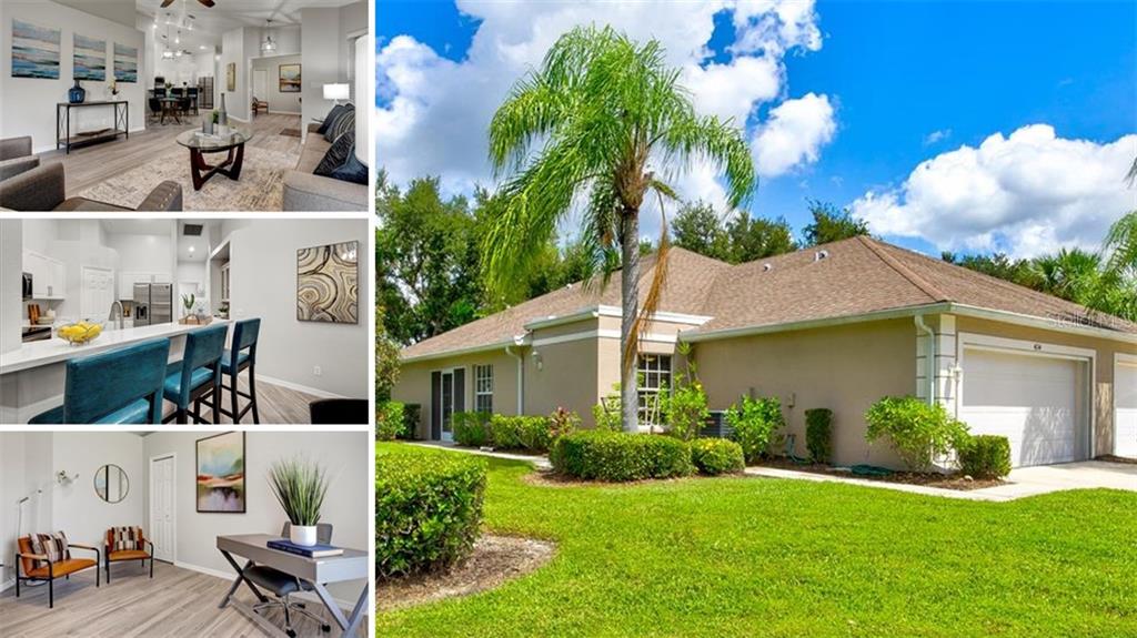 Move right in and live the good life… simply extraordinary—shows like a model home! corner lot, complete renovation, everything’s brand new! enjoy an easy, breezy, upgraded, updated florida suncoast lifestyle in this 3 bedroom, 2 bath villa with soaring ceilings and a wide open floor plan in an active yet serene premium gated community. light, bright and airy… fresh, shiny and new! designer-inspired white kitchen with new quartz countertops, new stainless appliance package and 6-foot breakfast bar overlooks dining area and spacious family room with sliders to private screened lanai. extra-large owner’s suite features volume ceiling, lanai access, two huge walk-in closets and master bath with double vanities, new quartz tops, and oversize shower. two additional bedrooms, guest bath, interior laundry room, and storage room with pocket door round out this spacious open floor plan. new upgraded ceramic wood plank tile floor, new bedroom carpet, new designer paint scheme, new light fixtures, new ceiling fans, new sinks, new plumbing fixtures, new hardware throughout. attached 2-car, screened garage with epoxy floor for additional entertaining space overlooks sweeping, lush green area with beautifully landscaped views. maintenance-free community with clubhouse and pool; easy access to shopping, entertainment, dining, healthcare, golf, outdoor activities, fitness, and so much more… sit back, relax, and enjoy!Villa 3 bedrooms - VILLAS OF SABAL TRACE