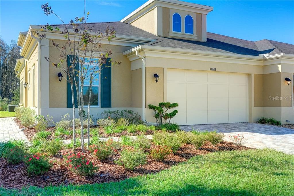 This well appointed maintenance free villa is located in the private gated community of santeri in estancia - an award-winning master planned community in the wire grass area of wesley chapel offering an abundance of amenities such as community pool, fitness center, tennis, parks and walking trails. santeri offers its residents secure gated entry, it's own private amenity center, with pool, spa and dog park. this cal-atlantic built home is situated on a stunning premium conservation lot and is loaded with over $40k in upgrades! beautiful staggered tile throughout living area, quartz countertops, built-in oven, gas stovetop, elegant backsplash and transom windows to name a few. don't miss your opportunity and schedule your personal viewing today of this luxury open floorplan home with two bedrooms, two baths, plus a den!Villa 2 bedrooms - ESTANCIA PH 2A
