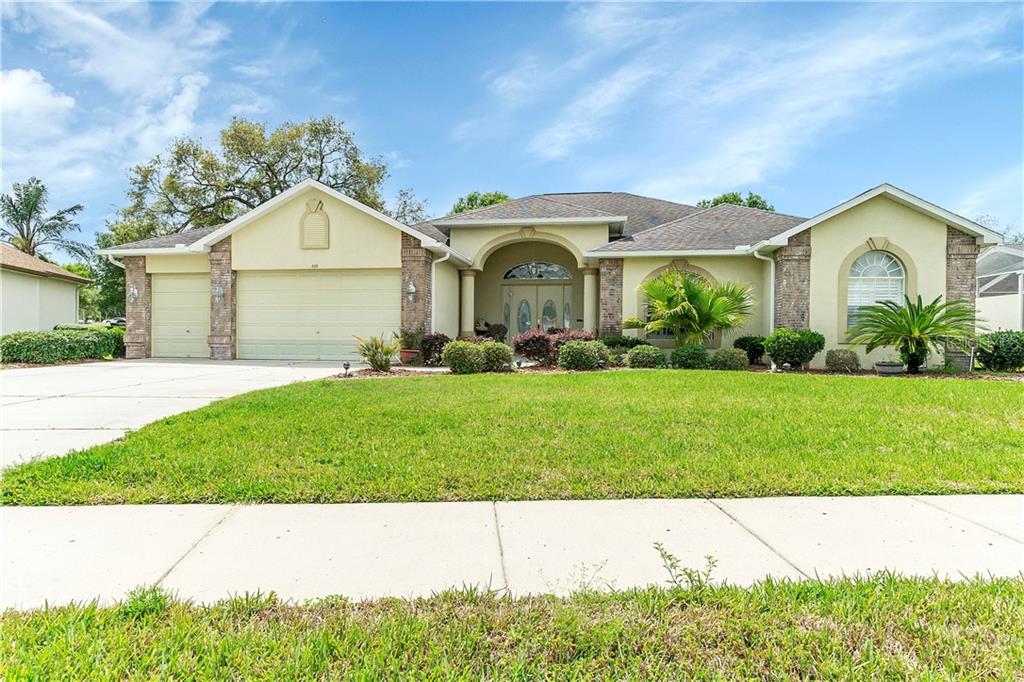Three bedrooms, 2.5 baths, pool home with a three car garage, located on the golf course overlooking the first tee at seven hills golf course. this home features an eat-in kitchen with corian countertops, pantry, and breakfast bar, formal dining room, formal living room with tray ceiling, family room with gas fireplace, huge master suite with dual sinks, snail shower, garden tub, and an oversized walk-in closet. there are high ceilings and plantation shutters throughout the house. outside over looking the golf course is the spacious lanai area with a 26x14 screen enclosed heated pool with a spa. the irrigation system is on a well, newer a/c system 2015, and the property is nicely landscaped.Single Family House 3 bedrooms - GREENS AT SEVEN HILLS PH 1