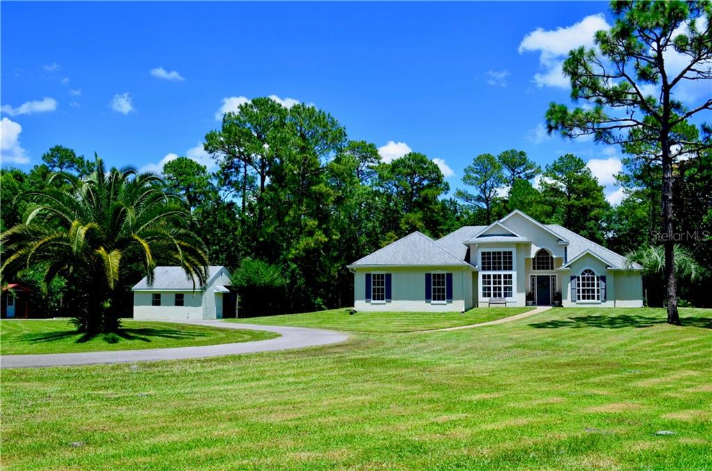 Welcome to this beautiful 3 bedroom, 2 bath deland country home on over 5 acres of property and is zoned for horses! from the moment you walk through the front entry way and are greeted with the tall pillars and vaulted ceilings, you'll fall in love! this property is peaceful and private with a lush wooded buffer surrounding it and to keep that lawn green, it's equipped with an irrigation system with 7 zones on the acre of land surrounding the home! the home features nearly 2,000 sq feet of living space, a split bedroom floor plan, screened porch overlooking a garden and stocked fishing pond, indoor laundry room, and so much more! it's also located just a few minutes from the saint johns river with public boat ramp and less than 15 minutes from downtown deland - voted "best mainstreet usa".Single Family House 3 bedrooms - ROYAL TRAILS UNIT 02 REP