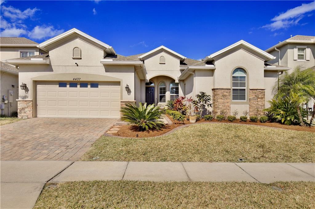 Welcome home to the beautiful gated community of north pointe! this stunning four bedroom pool home nestled between east lake toho and lake nona showcases a luxurious open floor plan and a dreamy primary suite. just 10 miles from the airport, this captivating estate boasts curb appeal with stone façade, a two car garage, paver driveway, manicured landscaping and a smart doorbell. inside you’ll be impressed by superior craftsmanship of this home featuring tall ceilings, arched walkways, warm neutral colors, diagonal tile floors, and pool views/access in multiple areas. the spacious formal living with tray ceilings and the large formal dining flow into the gourmet kitchen and sunlit family room. discover new delicious recipes in the kitchen, offering stainless steel appliances, pantry storage, granite countertops, bar top seating, recessed lights, and tile backsplash illuminated by under cabinet lighting. enjoy a cup of coffee in the breakfast nook overlooking the pool, and binge your favorite shows in the cozy living room. towards the front of the home you’ll find a flex space with arched oversized windows, perfect for a home office, parlor or craft space. retreat to the primary bedroom for the ultimate relaxation—open the french doors to hear the waterfall cascading over the pool as you rest underneath an elegant tray ceiling. the primary bath provides an at home spa experience with a glass door shower, a large garden tub, dual vanities with ample counter space, and rustic edison bulb light fixtures. the primary suite also provides double walk in closets. two of the sunny guest bedrooms share a jack and jill style bath with dual sinks and a private shower. the fourth bedroom is on the opposite side of the home right next to the guest bath, making it a comfortable space for your guests to spend the night. host get-togethers and barbecue on the shaded porch with a paver patio, surrounded by tranquil views of lush greenery. take a dip in the lagoon style pool and savor your peaceful and private 500 sq. ft outdoor oasis. off 417, you’ll be close by orlando international airport, excellent schools, the austin tindall sports complex, the shopping and dining of lake nona, lakefront park and remington golf club. come discover your dream home today. call today to schedule a showing!Single Family House 4 bedrooms - NORTH POINT PH 1B