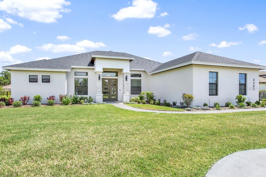 Brand new hulbert home - award winning "the nicole marie" this immaculate home was just completed in october 2020. located in a quiet gated community on a large .53 acre lot and pool ready. featuring 4br/3ba + den, large covered lanai & 3 car garage, 12' - 14' ceilings througout the main living areas, den &b laundry, 10' ceilings in all bedrooms, hardwood flooring througout the great room, kitchen, den & master bedroom, quartz countertops throughout the kitchen, all baths and laundry, custom maple wood cabinetry throughout, beautiful cafe series appliances, crown molding, 7 1/4' baseboards throughout the main living areas, porcelin tile featured in the bathrooms and laundry, built in speakers featured in the great room, master bedroom & lanai, 8' exterior and interior doors. epoxy gargae floor. the exterior features pavered driveway and lanai, tongue & groove wood ceiling on lanai and entry, outdoor mini kitchen, electric remote powered sun shades on lanai, large backyard & partially fenced. the community features tennis courts, two walking trails & community park. located just 5 minutes from publix shopping center and less than 15 minutes from lakeside village and polk parkway.Single Family House 4 bedrooms - GRANDEFIELD ON POLEY CREEK