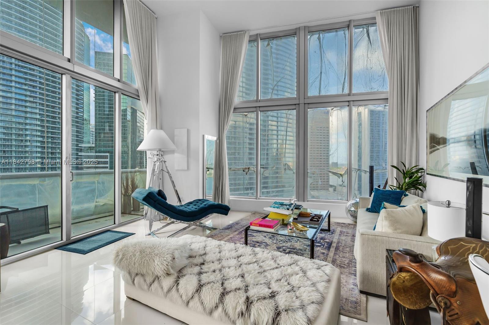 Rare icon brickell two-bedroom residence with 20-foot ceilings! this one-of-a-kind home boasts a spacious living and dining area with white porcelain floors, a stunning kitchen equipped with state-of-the-art appliances and marble countertops. the bedrooms offer breathtaking water and city views through soaring floor-to-ceiling windows and include double-height closets for added storage. the master bathroom has been renovated and features a luxurious jetted tub and shower. icon brickell is centrally located near premier shopping, dining, outdoor parks, and activities, just steps from brickell city center. this five-star, full-service building offers an array of exceptional amenities to enjoy.Condo Apartment 2 bedrooms - ICONBRICKELL CONDO NO 1