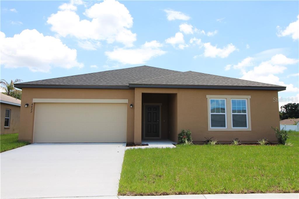 This large, airy 4 bedroom/3 bathroom 2 garage home is located in the newer, thriving community st. james crossings. the kitchen includes granite counter tops, upgraded cabinets, stainless steel appliances, a large pantry, and a kitchen island. the kitchen flows into the large family living space, with plenty of room for barstools to seat guests at the granite topped kitchen island. located in the living space is a sliding glass door, which leads to a spacious backyard that includes a covered patio and plenty of grass. the master bedroom includes a large walk-in closet and a master bathroom with a custom, spacious shower. this home accepts plenty of natural light throughout each room, giving it a very open and warm feeling. the location of this home is a huge bonus, because it is located so close to disney world, legoland, and the major highways. this community is also only a mile away from lake marianna, which offers various water sports activities and a relaxation spot.Single Family House 4 bedrooms - ST JAMES XING