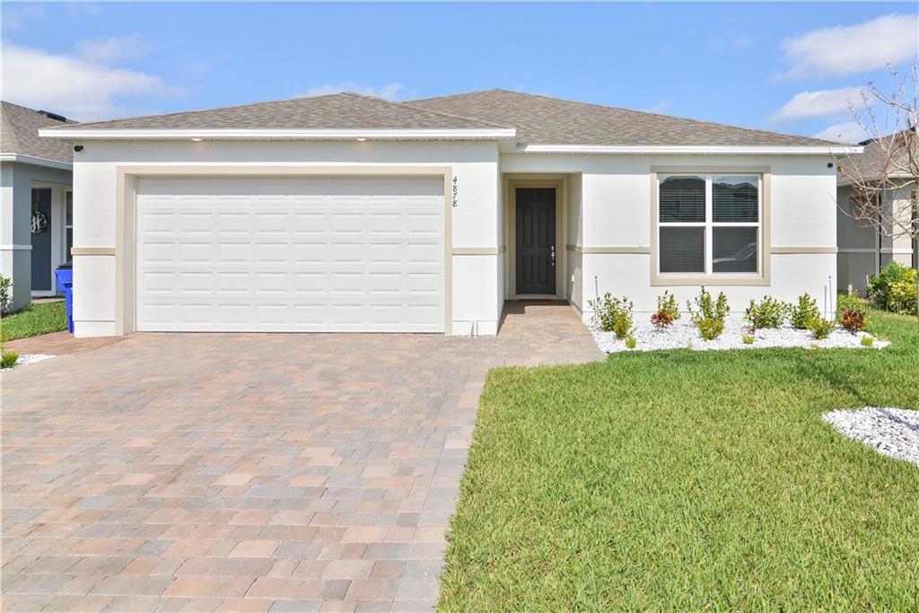 You must see this beautiful and immaculate home in a great location in st cloud. this is a 3 bedrooms & 2 baths open plan concept built in 2019 with a big kitchen island great for entertaining family. upgraded with quartz countertops in the kitchen and bathrooms, 42"kitchen cabinets with crown molding, custom dual shades blinds in the great room, stainless steel appliances, garage door opener, tile in all areas and carpet in the bedrooms, great size pantry, separate laundry room with cabinets, a mug room or computer desk space room adjacent from the garage, epoxy floor in the garage and extended driveway. as you enter from the front of the home you will find a spacious foyer, tray ceiling in the great room, sliding doors to the big screen lanai. community amenities such as recreation park and pool. just minutes from shopping, dining, lake nona medical city, airport, and central florida attractions.Single Family House 3 bedrooms - HICKORY GROVE PH 1