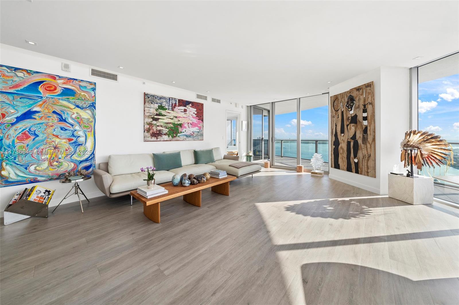 Experience unparalleled luxury in this exceptional miami residence, offering breathtaking views of miami beach, brickell, and biscayne bay. this 3-bedroom plus den, 4-bathroom home spans approximately 2,350 square feet, as detailed in the developer's floorplan. every detail is meticulously crafted, with no expense spared. highlights include a custom-built kitchen with an expanded island featuring a water filtration system and instant boiling water, wine cellar, italian frameless doors with superior noise insulation, and high-speed internet wiring system and home automation ready hardware. the master bathroom features custom cabinets, and the residence includes wired electric window treatments and bespoke closets. this unit is a must-see and one of the finest in the condominium.Condo Apartment 3 bedrooms - ARIA ON THE BAY
