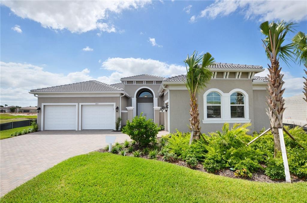Under construction. builder incentive of $25k has been applied to the list price of this fabulous decked out carlyle! this popular great room floor plan has 3 bedrooms plus a club room or optional 4th bedroom, 3 full and one half bath with 3072 sq. ft. of living space, on water lot is the perfect place to call home! the curb appeal is outstanding with the 3 car garage and courtyard entry. step inside to be amazed! the 12 x 24 waterfall off set tile expands throughout the great room, dining, foyer, club room, halls, kitchen and laundry. the huge great room with coffered ceiling has a huge 4 door slider out to the huge lanai to bring that florida lifestyle inside and out! in this entertaining paradise is a large wet bar with wine cooler and granite counter too! the open kitchen has a raised breakfast bar and a huge island as well. the well appointed kitchen has upgraded cabinets, gas cook top, stainless appliances including microwave oven combo. extras in kitchen include, granite, large sink, back splash, cabinet pantry, pull outs and more! both bedrooms have convenient updated bathrooms! the master is large with bay window, 2 large walk in closets and a spa like master retreat with dual sinks, quartz, soaking tub and separate shower. the club room is a great space for a den or game room what ever you choose! all this and located in valencia del sol, a new gl home luxury 55+ community that will include, a club house with tons of amenities, sports, and more you must see for your self where life begins right at home!Single Family House 3 bedrooms - VALENCIA DEL SOL