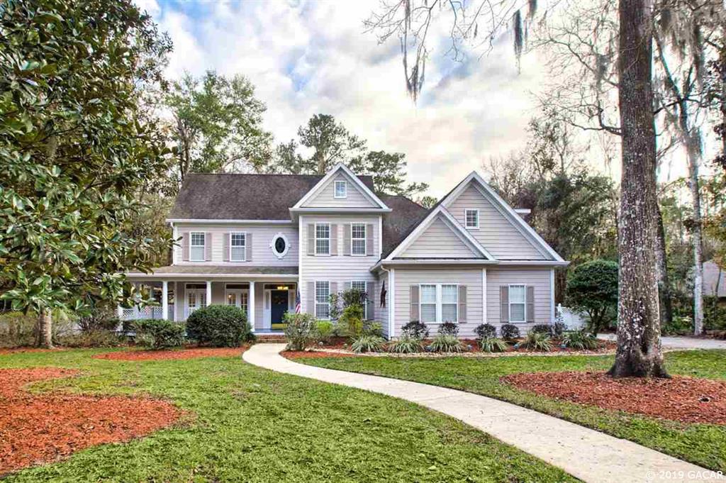 Beautiful former parade home in wonderful neighborhood of kensington park! 4 bedroom, 3.5 bath + study. very practical southern charm design with wrap around porch and striking curb appeal that is adorned with stunning large oak trees! built by sought after builder tom spain, and situated on large 0.83 acre lot that backs up to a 200 acre nature preserve. inside boasts a family room with 18ft ceiling, gas fireplace, wood floors, lots of crown molding and chair rail, plantation shutters, built in book cases, ample closet space as well as cooled florida room with french doors and more. outside boasts a very private and large enclosed pool with spa. perfect for the kids! all within walking distance of publix and many other shopping and dining conveniences at hunter’s crossing. the neighborhood resides along scenic, bike and walking friendly, millhopper road and is conveniently located to reach any part of gainesville with ease. master bathroom was completely remodeled in 2015. master bedroom is on main floor (downstairs). home warranty provided with acceptable offer. roof recently replaced.Single Family House 4 bedrooms - Kensington Park