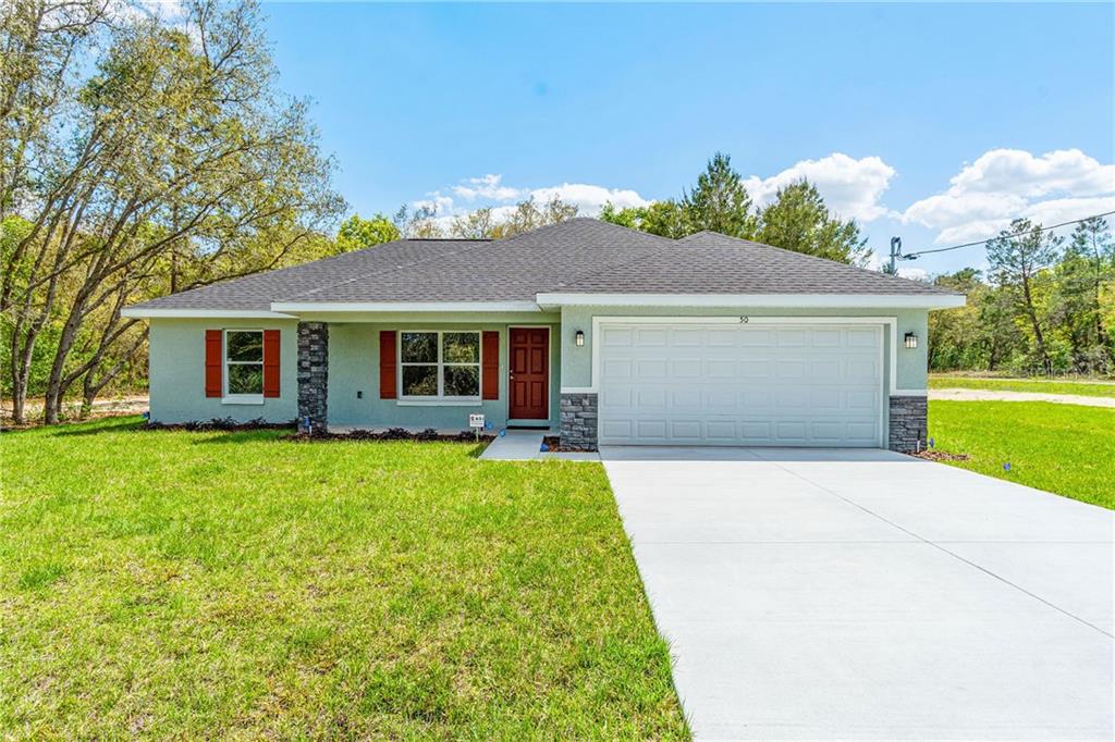 You must see this new home,..with stunning upgrades throughout! this lovely new home is brought to you by a luxury custom home developer. this brand-new home is great for a couple looking to downsize, or perfect for the first-time homeowner! the bright, beautiful modern open floor plan sits on a premium .49-acre corner lot. concrete block construction home with a stucco finish & stack stone accents, the layout is spacious from the living room to the dining room into the hi-end kitchen with vaulted ceilings, contemporary fan & pendant lighting, & 2” modern faux what wood blinds with a smooth finish. the gorgeous kitchen features granite countertops & island, luxury samsung™ appliance package, with high-gloss contemporary soft-close cabinetry & pantry. the kitchen’s undercabinet lighting illuminates the stunning backsplash beautifully. the stainless-steel appliance package features a french door refrigerator & bottom freezer for easy access. throughout the home you'll find luxury vinyl-plank floors that reflect a natural wood impression. the split home layout offers a master bedroom suite with tray ceiling & fan, oversized walk-in closet, dual sink granite countertop with upgraded cabinetry & a walk-in tiled shower w/a frameless glass door. the guest bathroom features equally luxury granite countertop & cabinetry with a tiled shower-tub combo. two-car garage w/opener. 10x10 open patio. irrigation system. alarm system. the home sits on a large lot—enough space to add your own hot tub/pool & enjoy a florida starry night in your big back yard! 100% usda financing available with as little as no out of pocket expenses for closing costs. owner has more new homes being constructed in the area.Single Family House 3 bedrooms - SILVER SPGS SHORES UN #36
