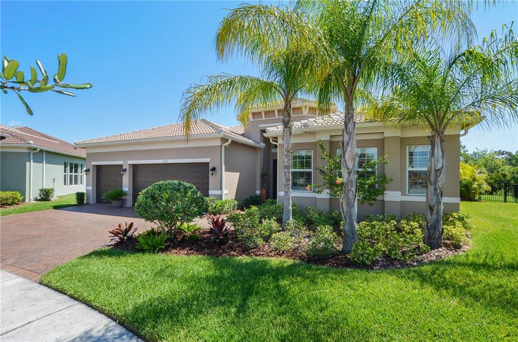 Luxury at it's finest located on one of the largest and private preserve home-sites in valencia lakes, this highly sought after charleston grande model; 3 bedroom, 3 bath, 3 car garage shows like a professionally decorated model home. as you pull into the private cul-de-sac notice the over-sized homesite that backs up to nature preserve for complete privacy. catch the sunrise everyday on this large extended lanai or swim laps in the huge 15x30 saltwater pool or maybe it's time to relax on the sun-shelf w/2 fountains.this lanai oasis is also pre-plumbed for a future outdoor kitchen,perfect for outside entertainment and enjoyment.as you enter the home through the designer glass double 8 ft. entry doors notice the high ceilings with coffered ceilings in the foyer as well as the formal living room and formal dining room perfect for special occasions with friends or family.the gorgeous hardwood floors throughout "all" living areas give the home both a luxurious yet comfortable feel.the gourmet kitchen is every chef's dream with the "model view" cabinet layout for the ultimate culinary experience w/42" raised panel maple cabinets with storage cabinets above plus over/under cabinet lighting,rope crown molding,matching luxury range hood, granite counter-tops, center island w separate veggie sink, walk in pantry w custom shelving, cabinet panel package,pot and pan drawers ,extended granite bar top,designer backsplash,single bowl stainless sink with upgraded plumbing fixture,and top of line slate appliances including slide-in range, range hood, dishwasher,built-in microwave and french-door refrigerator.view the sunrise and drink your coffee from the casual dining half-bay window. the kitchen serving bar opens to to the spacious family room so everyone can be part of the fun. the master retreat with coffered ceiling is large enough for a sitting area within the bay window and has 2 walk-in closets with custom built-ins plus a single french door that leads to the rear lanai and pool. the master bath has a large walk in shower, raised panel maple cabinets, dual vanities, granite countertops, and built in linen closet.the club room with a stunning custom built in wet bar located near the 3rd full bath could be used for multi-purposes such as a media or games. the library retreat is away from the all of the action and the perfect place to lounge or work at the desk or an optional 3rd bedroom for guests with convenient 2nd bath! the laundry room is huge with a built-in cabinet for folding and more storage, upper and lower cabinets, built-in utility sink, upgraded washer/dryer and a large separate storage room. "move in ready" would be an understatement for this home.this home is loaded with extra features like:custom window treatments/plantation shutters,designer light fixtures and ceiling fans,custom built-ins closets,whole house intercom system,epoxy garage floor plus hanging storage shelving,back yard aluminum fenced in area for pets,and much more. energy efficient with double pane glass windows, hurricane shutters, radiant barrier in attic and 14 seer hvac.one of the largest homes built on one of the largest sites in valencia lakes,tampa bay's premier 55 plus active community with a 40,000 sq.ft. clubhouse, clubs, tennis, pools, fitness classes,24 hr. fitness center bistro,pickleball,cooking, arts and crafts, game rooms, veteran's memorial park, community garden, softball field,live entertainment, dog parks and more. start living the dream today!Single Family House 3 bedrooms - VALENCIA LAKES