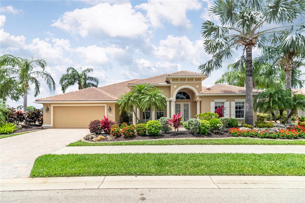 Elegance abounds in this spectacular " grand pelican royale" model home located in the desirable gated community of heron creek golf and country club. the minute you enter through the double doors from the brick paver front porch you will be wowed by the expansiveness of this beautiful home. the large foyer with soaring ceilings, complimented with accent columns, invites you into the impressive great room featuring coffered ceilings, majestic built-in shelving and loads of light pouring in from the pocketing triple sliders with transom windows. the centrally located kitchen offers granite counters and breakfast bar, solid wood cabinetry with under cabinet lighting accented with crown molding, newer stainless steel appliances, center island, and double door closet pantry. the breakfast area is light and bright with transom windows and sliders overlooking the sparkling pool...a delightful place to start your day. the tastefully decorated formal dining room is perfect for entertaining your family and friends. the spacious study/den with double door entry features built in shelving with accent columns, beautiful hardwood flooring and crown molding... a great space to relax and unwind. the remarkable master suite is your own sanctuary with a beautiful sitting area, framed by two columns over looking the sparkling pool and lake. there are two generous size walk in closets with custom shelving. the ensuite bath is amazing! enjoy the roman style shower, huge soaking tub, solid wood vanities with granite counters all complimented with crown molding. this meticulously maintained home has the perfect split floor plan for having company. the two large, nicely appointed, guest bedrooms are light, bright and complimented by a full bath with solid surface counters and tub/shower combination. the attractive lanai and heated pool area features and outdoor kitchen, travertine decking, waterfall features in the pool, built in planters, panoramic screens, ample under roof area, pool bath and views of the peaceful lake. additional highlights of this sensational home are electric hurricane shutters, newer ac and hot water heater, manifold plumbing, custom window treatments, crown molding and lush landscaping. this home reflects the personality and taste of those accustomed to the best in quality design, finishes and lifestyle. furnishings available under separate contract. with its warm sense of community, heron creek offers arthur hills design 27 hole golf course, 5 har tru lighted tennis courts, resort style pool, fitness center, activities galore, as well as elegant and casual dining. now is the time to start living the resort lifestyle you have been dreaming about!Single Family House 3 bedrooms - HERON CREEK