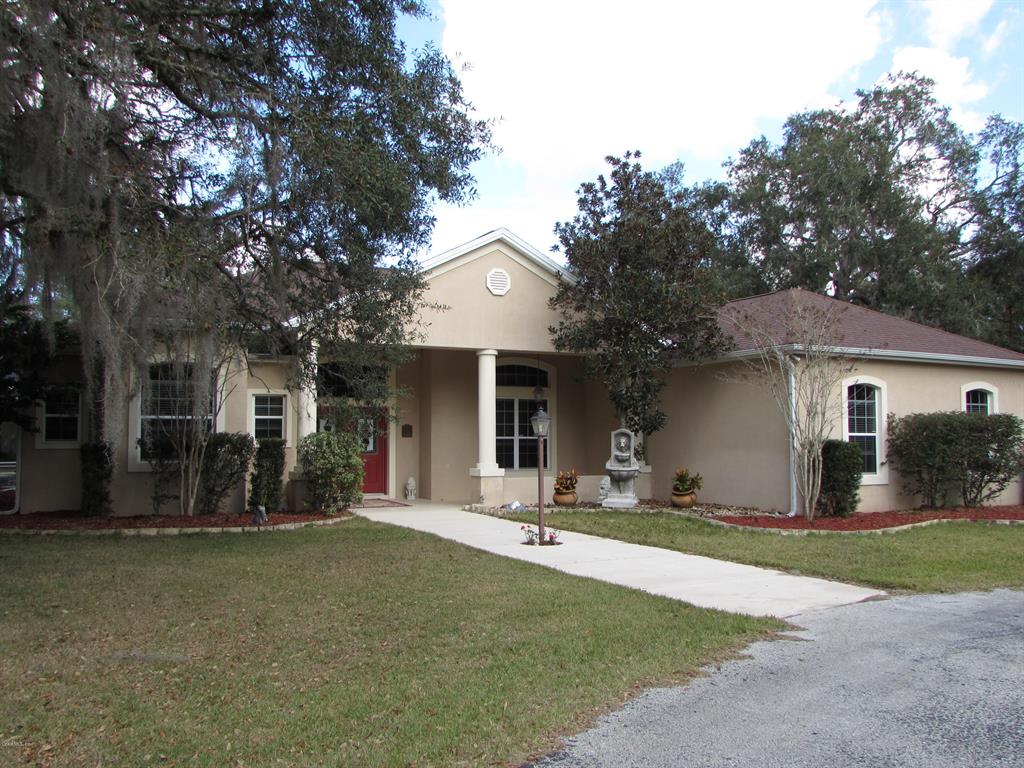 Stunning home nestled in center of a treed 5 acre parcel.features chefs kit w/island,wine rack,walk in pantry,cabinets w/crown molding & breakfast area.cozy family rm w/gas fp,formal liv rm & dining rm.luxury master bath w/garden tub,double vanities & separate shower. 4th bedrm being used as office. bonus rm w/french doors (would make a great in-law suite).relax by the screen enclosed pool w/spa and waterfall. circular driveway, lush landscaping, fountain, and gazebo enhance the front of your property. other features include granite counters in baths, pocket doors, tray ceilings, plant shelves,3 car detached garage/workshop w/220 electric, & utility shed. one year home warranty included.don't miss this awesome home and property!Single Family House 4 bedrooms - Out of County