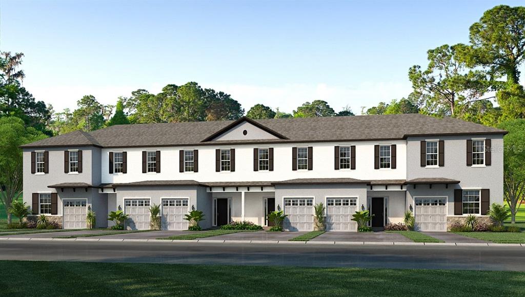 New home under construction - solana floorplan - water view. this roomy townhome feels more like a single-family home with an open concept eat-in kitchen, large family room, and casual dining area connected to a covered lanai that can be used for relaxing and dining al fresco. the well-appointed kitchen features a large island perfect for bar-style eating or entertaining, walk-in pantry, ample counter space, and 36” cabinets with crown molding. this home comes with stainless steel kitchen appliances including side-by-side refrigerator, built-in dishwasher, electric range, and microwave hood. downstairs there is also a powder bath and a one-car garage. upstairs, the owner’s suite includes a spacious bedroom, double vanity, and walk-in closet. two other bedrooms (one with walk-in closet) share the second bath. enjoy convenient access to the laundry room also located upstairs, equipped with included top load washer and dryer.Townhouse 3 bedrooms - BAYTOWN SQUARE