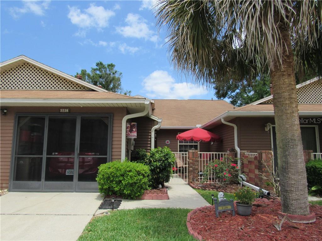 Nice inside unit villa! enter the pretty grotto area on your way to the front door. foyer leads you to the kitchen and the living/dining room combo. kitchen is a very handy layout with good cabinet and counter top space. there is a pantry closet and eat-in space. skylights in a couple rooms bring in the sunshine. laminate flooring in foyer, kitchen and dining area. bedrooms are at opposite ends of the house. second bedroom is good sized with plenty of closet space and access to the bathroom. the master bedroom is spacious and has a slider opening to the florida room. master bath includes two sink areas, tub/shower combo and walk-in closet. bedrooms have plantation shutters. nice little florida room can be used for office, hobbies, or just relaxing. when you feel like soaking up some sunshine, there is a great screened (birdcage) porch. the garage includes storage and the washer and dryer. hvac has been replaced. roof is replaced by the hoa when needed. lawn mowing is also provided. location is near the clubhouse. very friendly, active, 55+, gated community. indoor and outdoor pools on site for year-round exercise and enjoyment. too many sports, clubs and activities to mention. wonderful arena with walking track is available for dinners, concerts etc. free boat/rv storage. craftsman shop. convenient location to shopping, restaurants, major highways and attractions.Villa 2 bedrooms - HIGHLAND LAKES PH 01