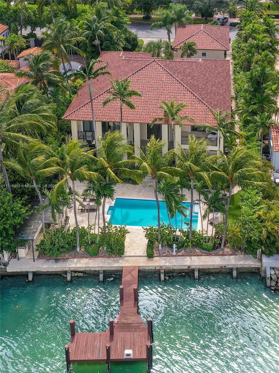 Amazing rental on gated property with separate guest house and dock. magnificent custom built 6 bd/8 bath home in the heart of miami beach. clean and great floorplan design featuring large primary, staff room and 2 car garage. dramatic entrance with high vaulted ceilings. formal dining room, eat in kitchen, family room and office on ground floor. impressive master suite along with 3 bedrooms upstairs. separate 2 bed/1 bath guest suite above a spacious 2 car garage. plenty of covered terraces. impressive outdoor area with pool, covered cabana, large dock, and lush landscaping. the perfect home for entertaining.Single Family House 7 bedrooms - Beach View