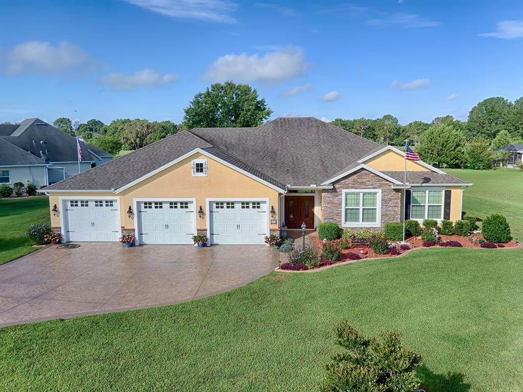 Welcome to one of the most beautiful, welcoming homes you will see. located on a corner lot, golf course frontage, with all the bells and whistles you can imagine to make your life more luxurious. home boasts high end laminate wood floors throughout home except baths. great room features double tray ceiling, hidden cam lights for added brightness, crown molding through main living and master suite. 6" baseboards throughout. view the golf course through the wall of windows on back of home overlooking 41 ft lanai and lushly landscaped back yard. this is a chef's dream kitchen complete with 6 1/2' x 4 1/2' granite island, 42" hardwood cabinets all around, soft close doors and drawers not only in kitchen, but in all cabinets in home. granite also in all areas w/brick backsplash in kitchen. plantation shutters in all bedrooms. master suite features a 13' x 8' walk in closet. master bath w/dual sinks, walk in linen closet, huge roman shower big enough for a whole group of friends. utility room w/pocket door and cabinets for storage. the garage is a man's dream "man cave" of 1380 sq ft plus a half bath. floor is completed with a designer epoxy finish for protection and easy cleaning. room for 3 cars across the front and 3 on the left side from to back plus another area for your workshop and storage and a utility sink. back wall features double doors opening to back yard to drive your ride on mower, etc out the back. also pull down stairs to the floored area in attic for added storage. attic has icynene insulation which has kept their electric bills down considerably.Single Family House 3 bedrooms - LAKES LADY LAKE