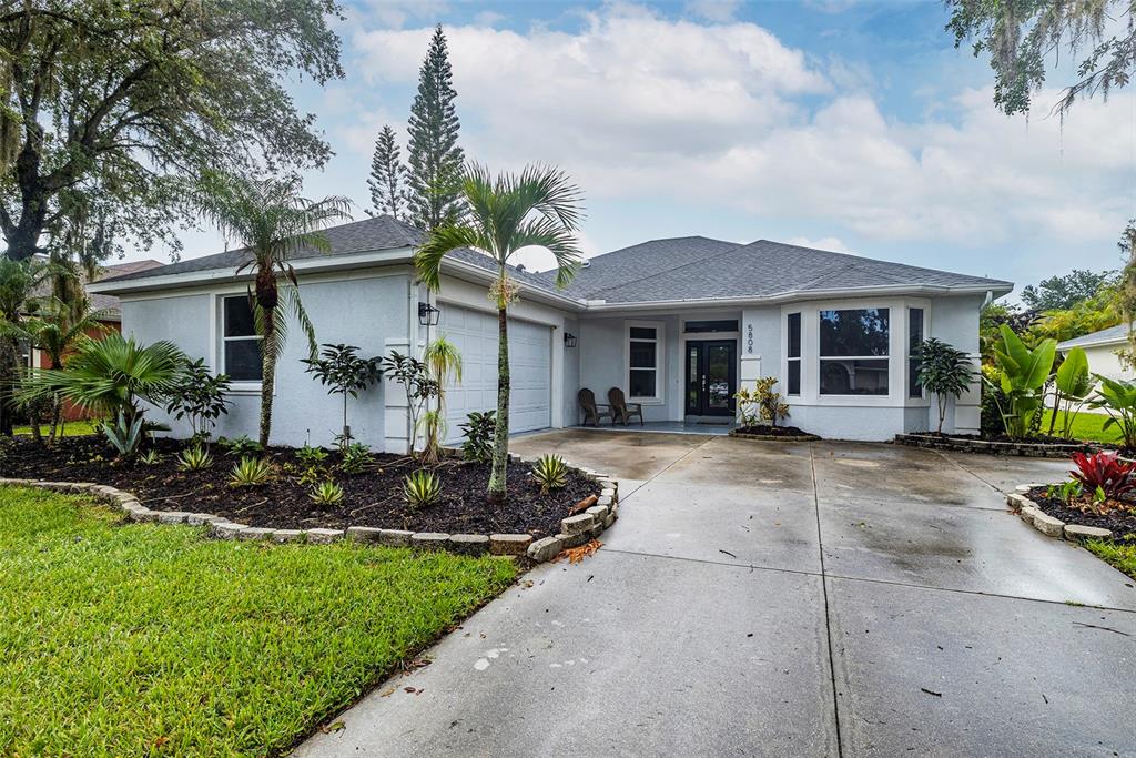 Updated pool home in oakley subdivision. just under 1900 sq ft of living space in this 3 bedroom, 2 bath, oversized 2 car garage pool home. no cdd and low hoa! newer roof (2017). new pool pump. driving up to the home, you will notice the oversized garage door, professional landscaping, and modern curb appeal. as you walk inside the home, you will notice the tray ceilings, tile flooring throughout the living areas, fresh interior paint, and new modern fixtures that complete the open concept home. plenty of living space as you are greeted with an open formal living and dinette space or reading nook. large kitchen features 42" shaker cabinets, quartz countertops, peninsula with breakfast bar seating, stainless steel appliances, subway tile backsplash, closet pantry, and bonus formal dining room space featuring bay window. split bedroom with new plush carpeting. spacious primary's suite boasts his and hers walk-in closets and ensuite bathroom with his and hers quartz vanities, soaking garden tub and shower stall. front guest bedroom is spacious and boasts a bay window. hall bathroom has updated granite vanity with walk-in shower. french doors into the 3rd bedroom which has crown molding and can easily be used as an office/flex space. double pocket sliding doors from the family room out to the large covered patio and screened in pool lanai. interior laundry room with quartz countertop and utility sink for added convenience. plenty of room in this oversized garage for all your toys and tools! this home has all the space you need and is conveniently located to schools, us-301 and i-75, ellenton premium outlets, ellenton ice rink, whiskey joe's and ellenton area restaurants/shopping and more!Single Family House 3 bedrooms - OAKLEY