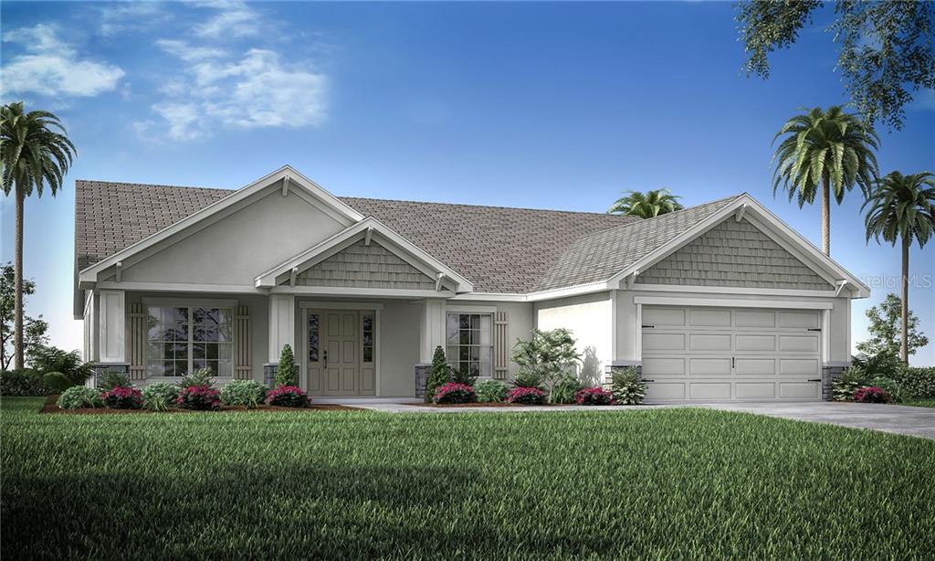 Under construction. a craftsman-style exterior and front porch welcome you home to the ryleigh, a florida new home plan by highland homes. the ryleigh features a versatile den, formal dining room and a bright and open gathering room, kitchen, and casual dining cafe. relax in the owner's suite featuring a stylish tray ceiling, a large walk-in wardrobe with linen stack, and luxury bath including dual vanities, a garden tub, and tiled shower counter-height breakfast bar and sunny casual dining cafe, plus a formal dining room, walk-in pantry, dedicated laundry room, hall bath and linen closet conveniently located between the secondary bedrooms, split plan layout, for owner's suite privacy volume ceilings in the living area and secondary bedrooms, stylish tray ceiling in the owner's suite covered lanai with access from the gathering room and hall bath, covered front porchSingle Family House 3 bedrooms - HIGHLANDS GRACE PHASE 2