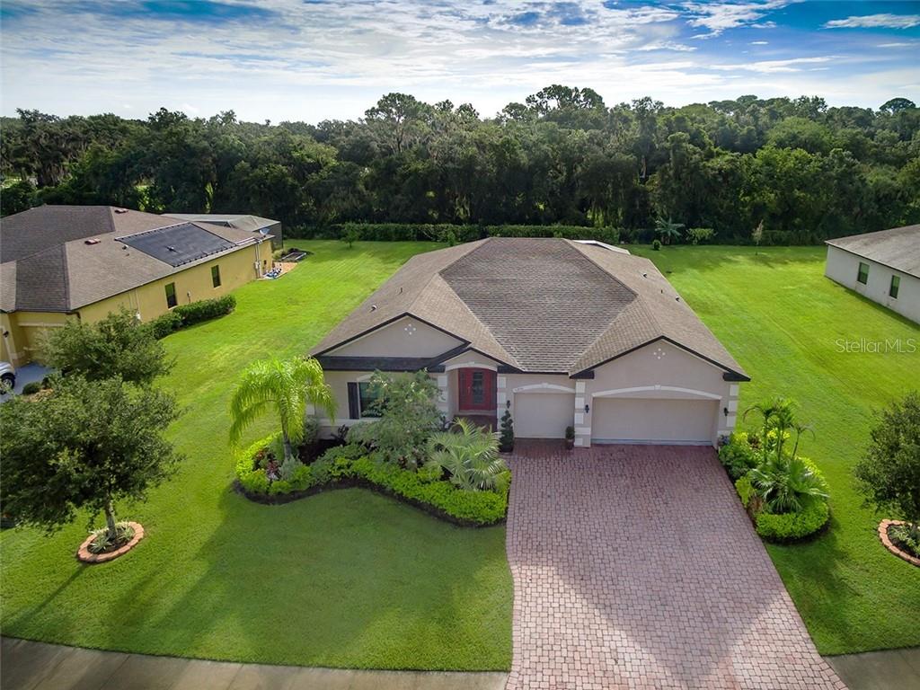 Stop the car you are home! 4bedroom/3bath home with extened lanai and tons of upgrades. one of the largest lots in the neighborhood of .40 acres. back extended lanai has a gorgeous slate floor which measures 43x13 overlooking the huge back yard. from the moment you drive up to your 3 car garage with paver driveway you will fall in love. from your beautiful lead glass door to the tiled enterway. over $50000 in upgrades which include beautiful engineered wood floors with expresso cabinets, custom backsplash, 3d raised bar tile, double oven, dry bar with wine cooler, crown and base, granite countertops, stainless steel appliances, laundry room cabinets above and below. master bedroom has an 18x5 walk in closet, and tray ceiling. master bath has double sinks, with shower and garden tub. has a separate en suite for a mother in law suite with private door and full bathroom. other two bedrooms large in size. back patio is magnificent to set out sip tea while enjoying the peace and quiet. buffalo creek middle shcool is within walking distance. on same road as buffalo creek golf course and communty park. this one you don't want to miss.Single Family House 4 bedrooms - SHEFFIELD GLENN