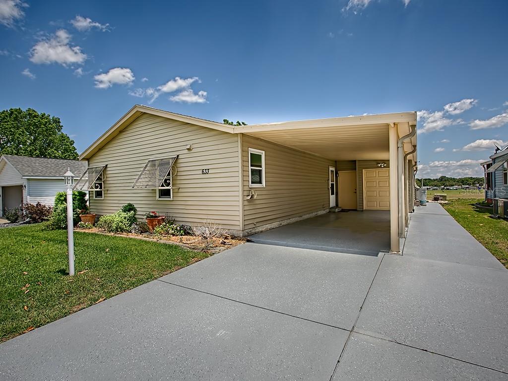 No bond on this affordable site built home with 1400+ square feet and panoramic golf course views! this gulf breeze model features a large, updated kitchen with granite counters and custom cabinets. other fabulous features include wood laminate and tile floors throughout, insulated windows, hvac (2009), replaced shingles (2010), 3 solar tubes, a skylight and an indoor laundry room. the large master has walk-in closet and a large master with a renovated shower. there is also room for you to put the bathtub of your choice. the patio with a retractable awning is the perfect spot to sit and enjoy the view. and let’s not forget the carport and golf cart garage with extra storage. motivated seller! make an offer! call to view today!Single Family House 2 bedrooms - THE VILLAGES