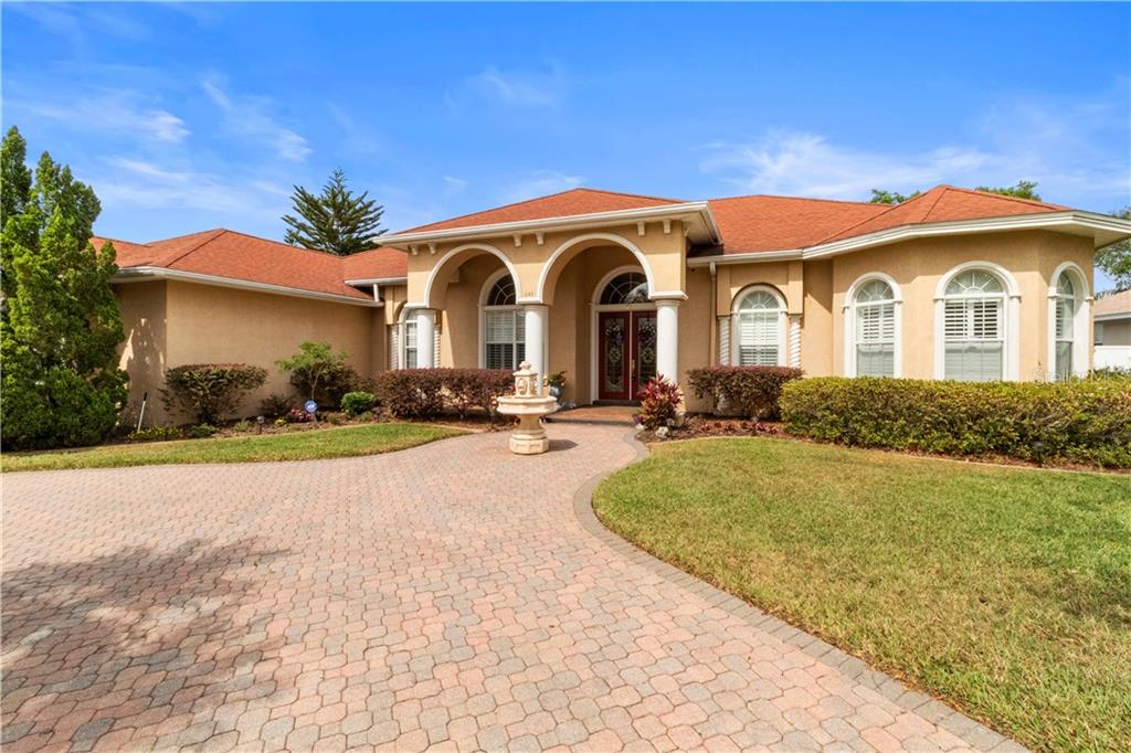 Looking for a lakefront lifestyle? you will find it here in the gated community of the lakes at christina. as a former parade of homes model, this one owner, one-of-a-kind, 4/5 bedroom, 4 and a half bath, custom-built home is ready for its next family. the new roof was completed may 2020. every room on the first floor has a spectacular view of lake christina and opens to the pavered pool area recently converted to a salt water system. gleaming cherry wood flooring leads from the front door into the formal living room with gas fireplace. columns and crown molding adorn the formal living and dining rooms with coffered ceilings. chef's kitchen holds a plethora of custom cabinets, silestone counter tops, prep sink island with reverse osmosis water system, new gas cooktop 2020, and custom hood. breakfast area sits in a bay window, of course, with a view. past the kitchen is the family room with picture windows of the lake and pocket siders to the pool, great for entertaining. the first floor also offers an oversized primary master retreat with pool access, a reading nook, en suite bath with split vanities, walk in shower, soaker tub, and large his and her closets. work safely and quietly from home in your private office with gorgeous built-in shelving. secondary master/5th bedroom is also on first floor could easily be used as a mother-in-law suite with walk in closet and ensuite bath. current owner is using it as a theater room. a grand wooden staircase carries you to another loft/gathering room and three more bedrooms. here you will find another mini master with an en suite bath and balcony. two remaining bedrooms share a jack and jill bath with dual vanities. storage was also taken into consideration during design, with many extra cooled storage spaces, a floored attic over the garage, and roof access from inside the second story loft. plenty of parking for family and guests with an oversized 3 car garage, pavered circular driveway, and additional side parking area. enjoy the convenience of a whole house central vac system as well as a water softener system. two air conditioners also have been recently replaced. home has even been inspected. flood insurance not required, home is in zone x. there are far too many features in this over 4800 sq. ft. lake front home to list!Single Family House 5 bedrooms - LAKES AT CHRISTINA
