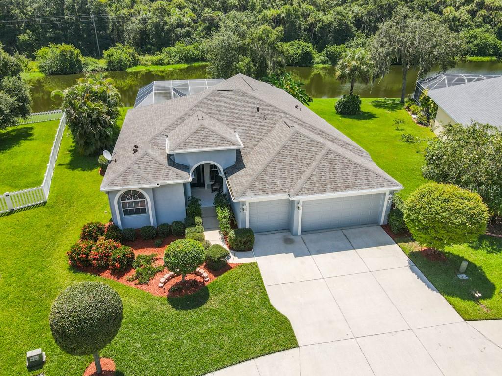 Stunning lakefront pool home on one of the best private cul-de-sac lots in all the fairways of imperial lakes! plenty of room for the entire family and guests. this open split floor plan home offers nearly 2,300 square feet of living space featuring 4 bedrooms, 3 baths, 3 car-garage and a pool nestled on nearly a quarter acre! glorious views of pool, patio and lake as you enter the home. laminate flooring in living and family areas, extended large 18” tile throughout kitchen, dinette, hallways and wet areas. updated kitchen features gorgeous granite countertops, 42-inch upper wood cabinets, stainless steel appliances (2017), and a large breakfast bar the whole family can enjoy! master bedroom ensuite boasting two large walk-in closets and private entrance into pool and patio. double vanity sinks, garden tub and shower in master bath. retreat to your own tropical oasis providing a covered lanai, a pebble tech finished heated pool and spa, bird cage enclosure, expansive patio and a wall of lush landscape providing privacy while overlooking your own private lake. freshly painted exterior, brand new roof, re-screened bird cage enclosure (2017), irrigation, new carpet in right rear bedroom are just a few of the several upgrades this home has to offer. convenient location near i-75 with access to tampa, st. pete., bradenton and sarasota. call today to view this property and get ready to fall in love!Single Family House 4 bedrooms - FAIRWAYS AT IMP LKWDS 2A, 3B, 3C