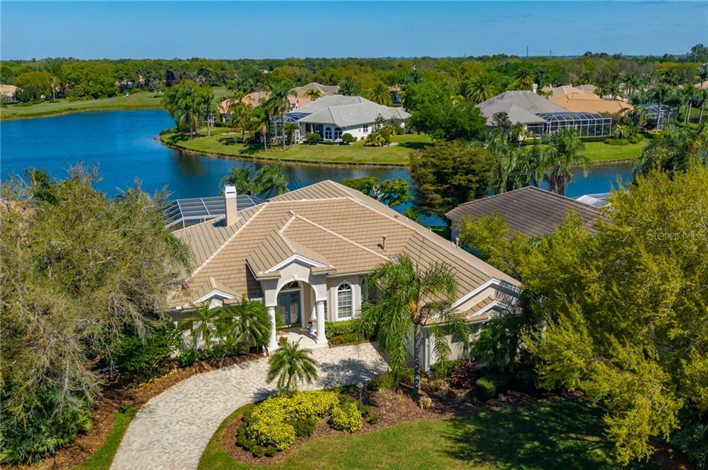 Gated university park country club is well known, admired and sought after for its location, amenities and especially its beauty. the langley neighborhood of only 31 beautifully designed homes on a cul-de-sac street is one of its gems. this home is truly a beauty and epitomizes the best of florida indoor/outdoor living. this split plan home with 3 bedrooms, 3 baths, and pool with study/office is absolutely one of the more beautiful homes we've had the pleasure to bring to market. upon entering through the double beveled glass doors you will immediately have a sense of space and notice an abundance of natural light, tasteful soft color palette and lake view. many of the primary living areas provide lake views and wetlands inhabited by beautiful birds plus the golf course beyond. the living room features a raised hearth gas fireplace with tile surround and coral stone mantel as the centerpiece of this lovely room. adjacent dining room is spacious with a 13' coffered ceiling and built-in buffet. the ensuite owner's retreat is large and includes a sitting area, coffered ceiling and walk-in closets with builtins. the kitchen offers gas appliances (new in 2019) which include a 5-burner cooktop, granite counters, stepped, roped and raised panel cabinetry and a breakfast nook with aquarium glass. the kitchen is open to the family room with built-in entertainment center and sliding glass doors leading to the lanai, pool/spa and cafe area with outdoor kitchen. the office/study at the rear of the home features a cathedral ceiling, builtins with adjustable shelves and sliding glass doors leading to the lanai. this home has a wonderful view of the lake, wetlands and golf course. the large garage with separate golf cart door will easily accommodate two cars and has an epoxy-coated floor (new in 2017) and cabinet storage plus work station. other features include 10'-13' ceilings, generous use of crown molding, soft water system, laundry room, hunter douglas window treatments, arched doorways, brick paver driveway, keyless garage entry, landscape lighting, resurfaced pebble tec pool and spa (2018) and newer lanai screen. this beautiful home is a must see!Single Family House 3 bedrooms - UNIVERSITY PARK