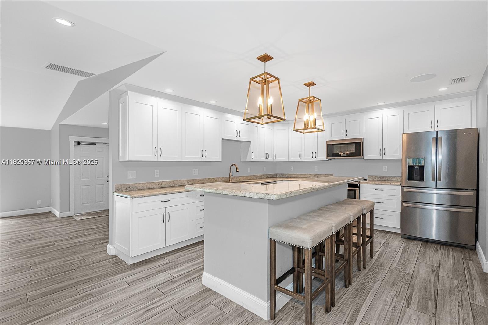 Nestled in sought-after hidden lakes, this 3-bed/2-bath pool home epitomizes refined living. renovated with ceramic wood-look tile flooring, the kitchen boasts upgraded appliances and a spacious breakfast bar. open living/dining, renovated bathrooms, and a heated pool with park-like views offer resort-style living, no backyard neighbors. additional features include ring doorbell, gated parking pad, great for a small boat or rv. nearby amenities include neighborhood playground & tennis courts! . close to i95, grocery stores and restaurants. minutes to fau, downtown mizner park & delray beach atlantic avenue, this home offers comfort and convenience.Single Family House 3 bedrooms - HIDDEN LAKE