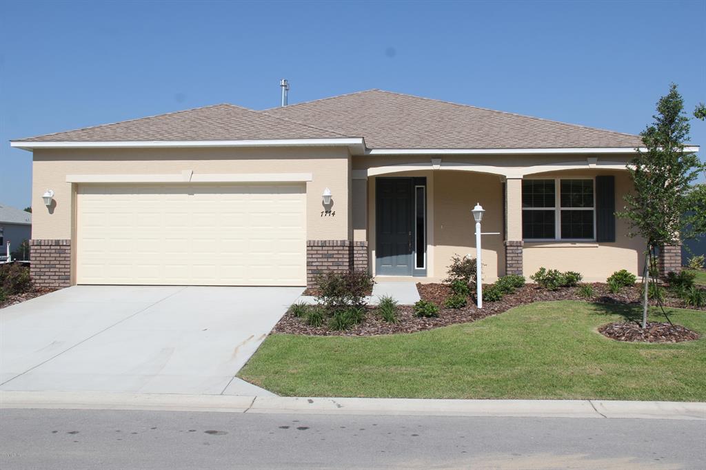 Wonderful wisteria with 2 bedrooms plus flex room, 2 bathrooms, and a 2 car garage. this inventory home is located in indigo east! lovely foyer leads to the guest bedroom that overlooks the covered porch. 2nd bathroom features a large quartz vanity sink, and bath with built-in shelving. the beautiful kitchen features a wall oven, crown molding, stainless steel appliances, quartz counters and a unique backsplash. the master suite has 2 walk-in closets, double vanity sink with quartz counters, and walk-in shower. there is tile throughout the home with carpet in bedrooms. spacious screened lanai. located in ocala's premier, active 55+ community, loaded with amenities, including golf cart access to two shopping centers.Single Family House 2 bedrooms - Indigo East