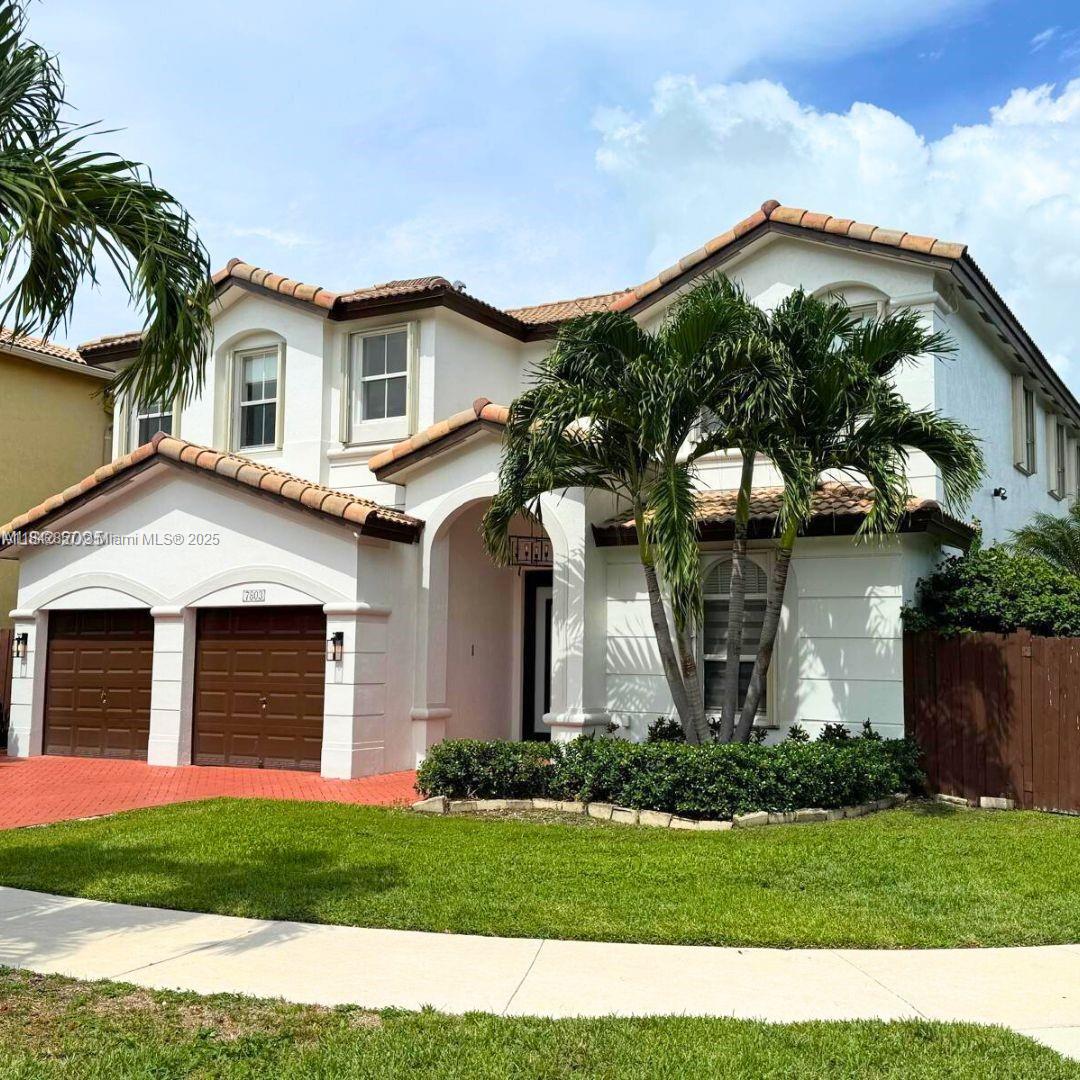 Step into style and comfort in this beautifully updated 4br/4ba home in isles at doral. positioned on a private corner lot with peaceful lake and fountain views, it’s ideal for everyday living and entertaining. enjoy a brand-new 2024 saltwater heated pool with infinity jacuzzi, waterfall, and led lighting—your own backyard oasis. inside, soaring ceilings, great natural light, and an open-concept chef’s kitchen with large quartz waterfall island, state-of-the-art samsung smart appliances, wine fridge, and space for a coffee bar under the microwave. downstairs bedroom with full bath—perfect for an office, guest, in-law, or au pair suite. upstairs: loft and 3 ensuite bedrooms, including a stunning primary retreat. two-car garage, dual side gates, and space for a summer kitchen.Single Family House 4 bedrooms - ISLANDS AT DORAL 1ST ADDN