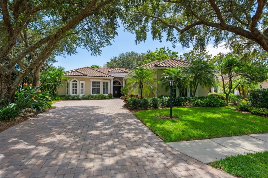 Take a virtual tour of one of the most desirable homes in university park's wilton crescent neighborhood. the front of this lovely home sits directly across from a park-like setting with a stately fountain while also enjoying a beautiful golf course view from the lanai. this side-load garage home, with extended garage for golf cart, has wonderful curb appeal enhanced by custom pavers. high ceilings, plantations shutters and large porcelain tile add to this home’s comfort and design. the three-bedroom/three-bath plan also includes a remodeled kitchen with stunning granite reminiscent of grains of sand. an office sits adjacent to the kitchen and overlooks the golf course. the expanded pavered lanai with pool and spa takes full advantage of the golf course view and has been designed to include a privacy wall to create a sanctuary for its owners. heated pool with solar panels allows for year-round enjoyment of this home. other special features include a gas fireplace in the living room, an outdoor shower, and a built-in freezer in the laundry room (2019). numerous recent updates, including new barrel tile roof (2015), new screening for the lanai (2019), new washer and dryer (2019), new hvac (2019), and new water heater. university park is known for its natural beauty; amenities include a 27-hole championship golf course, tennis, fitness and award-winning dining. please note: room measurements are per builder’s plan. please verify if exact measurements are important.Single Family House 3 bedrooms - UNIVERSITY PARK