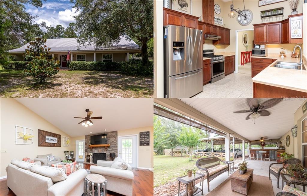 This is it!!! come find peace and tranquility on a little over 5 acres with beautiful old florida oak trees. you are going to absolutely love this place, we guarantee it! brand new a/c! the gorgeous home is custom built and offers over 2,200 sqft with 3 bedrooms, 2 bathroom and an office. the "flex room" is currently being used as a formal dining room, but could easily be used as a den or living room. the large open kitchen has newer stainless steal appliance and custom cabinetry with plenty of storage. the extra large family room has beautiful wood floors and a one of a kind fireplace. the master bedroom is very spacious and split from the 2 guest rooms. the master bath is huge! you will love the custom organizers in the master closet, as an added bonus the closet has two entries, one that is located right outside the laundry room for added convenience. step outside onto your enormous back patio and look out over your sprawling land. the three car carport offers plenty of space for all the family vehicles and some toys. if you need more area for storage you are going to really like the 24x48 pole barn out back complete with a 12x24 workshop. this offers plenty of room for all your toys, boats, campers, etc. this home is a definite must see, call today to book your appointment because it wont be on the market long!Single Family House 3 bedrooms - SUNNY ACRES 06 & 05