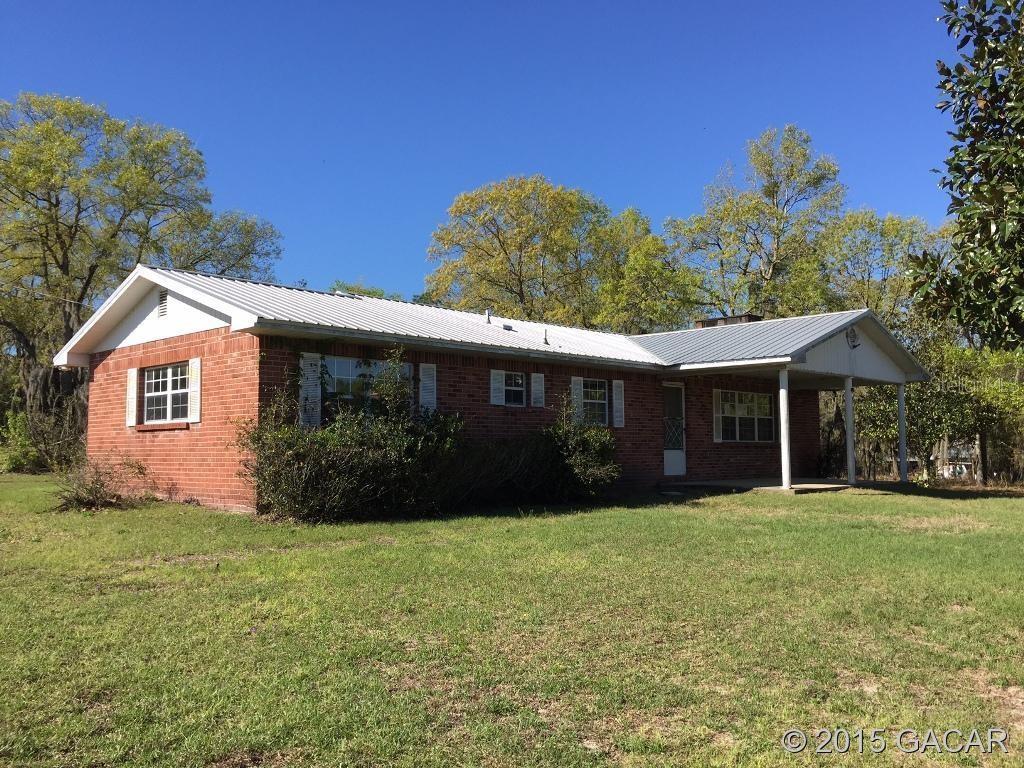 Why pay higher taxes when you don''t have to? this property is located less than a mile into gilchrist county, offering a convenient location while still saving you dollars, which just makes sense. situated on just shy of 5 acres, this 3 bedroom/2 bath brick home features a cozy living room with fireplace, screened back porch, metal roof and an oversized garage with plenty of room for toys and more.Single Family House 3 bedrooms - Gilchrist Farms