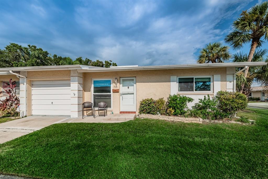 The perfect move-in ready villa awaits you, this end unit is light and bright and is spacious for its size. with lots of upgrades you will be impressed with the features; newer laminate flooring, impact rated windows (2018), six panel doors, ceiling fans throughout, bathrooms have newer vanities, both bedrooms are ample size and have lots of storage space, guest bedroom has walk in closet, master bedroom has two side by side closets with double hung clothes racks and both rooms have custom shades in the larger windows. the kitchen has been completely renovated w/upscale cabinets including soft close with granite counte-rtops, under-mount farmers sink and glass tile backsplash, high end stainless steel appliances, (range has 40 minute self-clean cycle) and built-in trash/recycle bins. plus, the eat-in space in the kitchen opens onto the screened in lanai and outside area grilling is allowed. the attached garage has door opener with electric eye safety feature and comes with a newer washer/dryer(2019) and two free standing shelving units. conveniently located in the popular 55+ community of heather hills villas, you will enjoy the community pool, clubhouse and shuffleboard. just minutes from downtown dunedin, beaches, hospitals, shopping, senior community centers and entertainment venues.Condo Apartment 2 bedrooms - HEATHER HILL APTS