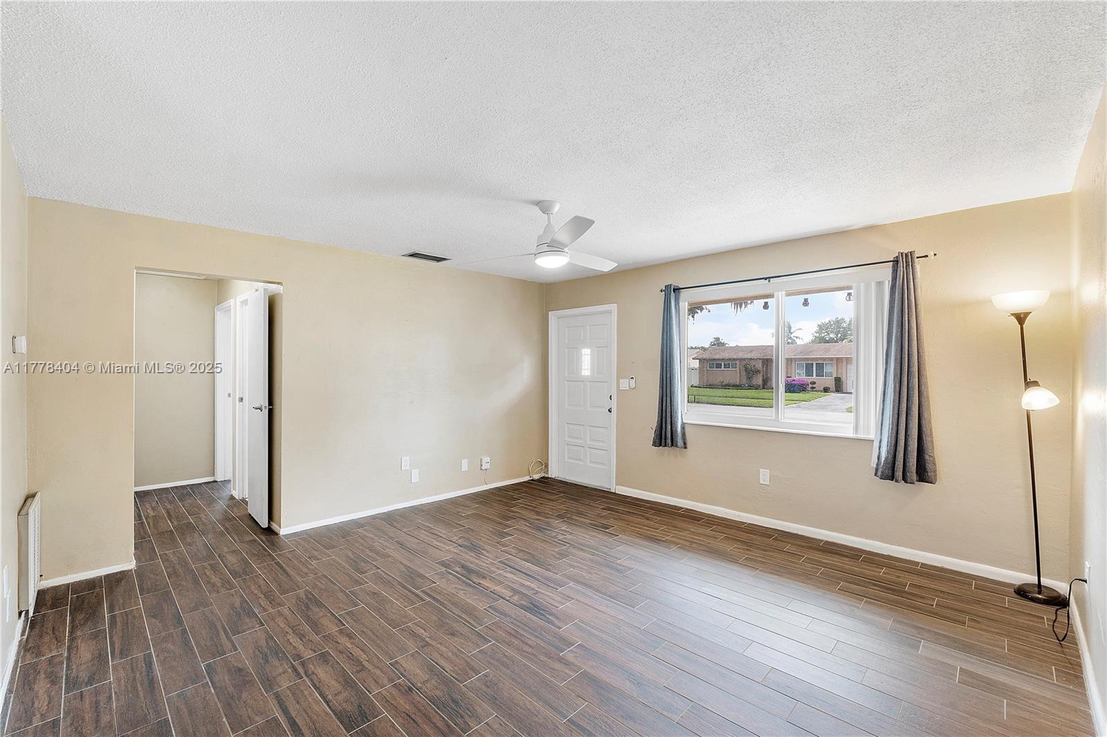 Ideal single-family home for buyers prioritizing affordability or investors looking for a turnkey rental opportunity with no hoa and no restrictions. this home has a brand new roof (april – may 2025) and impact doors & windows throughout (april – may 2025), as well as a large back yard and screened-in back porch. featuring updated ceramic wood-look tile flooring throughout and updated vanities in both bathrooms, this property has a circular pull-through driveway capable of accommodating four cars. conveniently located west of university drive in sunrise, this charming property offers a rare opportunity to acquire an updated single-family home in south florida for under $400k.Single Family House 2 bedrooms - SUNRISE GOLF VILLAGE