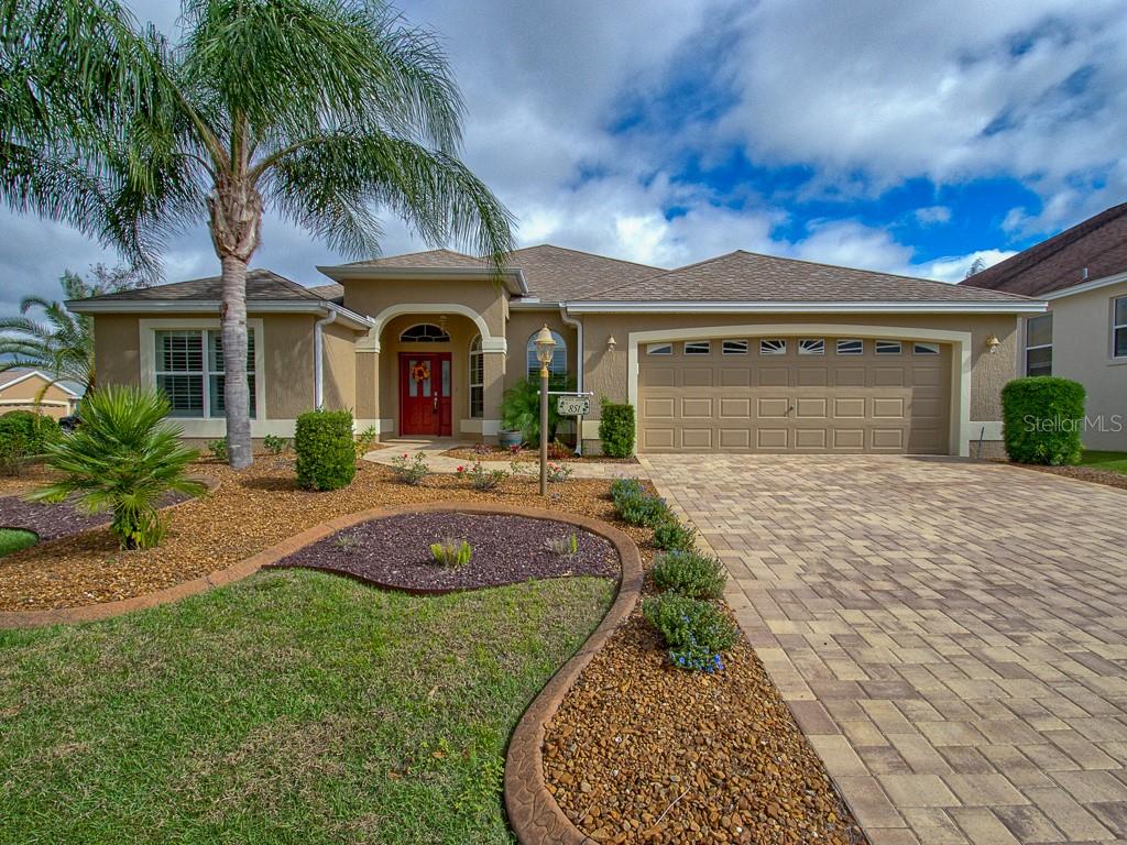 Perfect location….perfect gardenia situated on a corner lot in the central village of largo, just south of lake sumter landing and just off canal st. this upgraded home has all that your are looking for. upon arrival, you will be pleasantly surprised as your enjoy the beautiful curb appeal which includes a brick paver driveway, gorgeous large palms and landscape with custom concrete edging for your expansive flower beds. other features include beautiful oversized kitchen with trimmed cherry cabinets and pull outs, solid surface countertops, tile backsplash, ss appliances with french door refrigerator and gas range. wood floors and plantation shutters flow throughout living areas and spacious mstr. bdrm. master bath features double vanity, solid surface countertops and 2 large walk in closets. you will spend a lot of your time on the large screened lanai which includes a stamped concrete floor. the nice size laundry room includes above cabinets for storage and a deep sink. garage has epoxied floors and pull down stairs in attic. front guest bedroom/den does not have a closet but is great to use for office or tv room. this awesome location is less than 2 miles from lake sumter landing and close to bogart executive, bacall executive golf courses and brinson perry dog park. you must put this home on your list to see. can be sold turn-key. nothing for you to do but bring you suitcase and move right in and enjoy!!Single Family House 3 bedrooms - THE VILLAGES