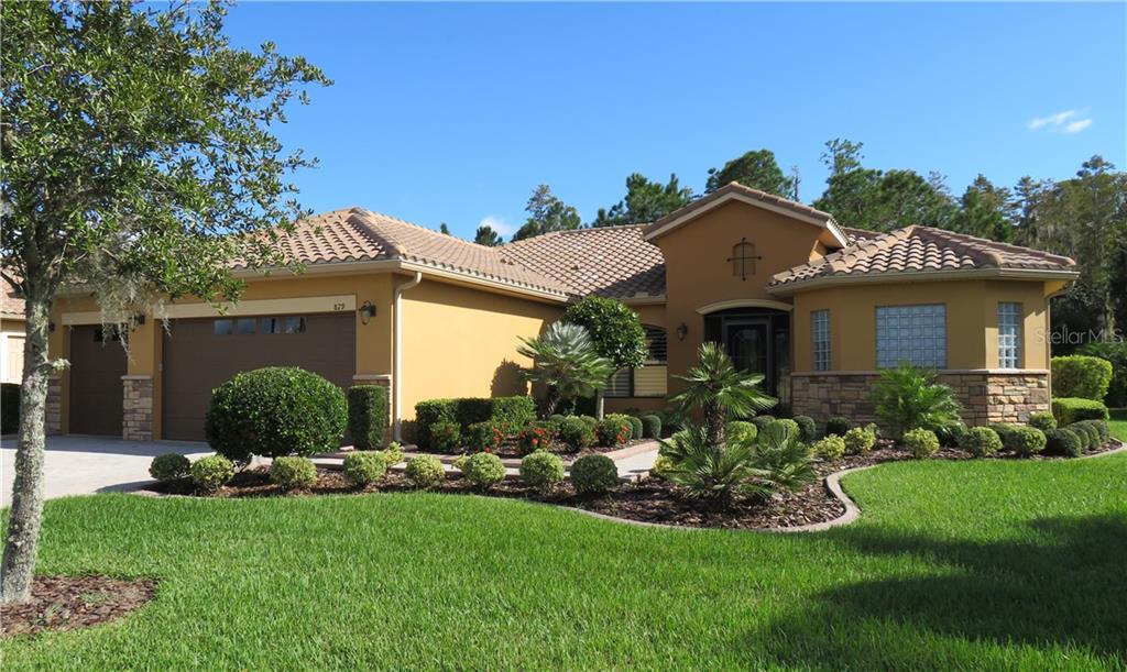 With a stunning backdrop of a pristine preserve, this well-maintained portofino estate offers a wonderful setting within the gates of solivita. this sought after venetian model home offers more than 2500 square feet of living space. the open floor plan begins through beautifully detailed leaded glass double doors that flow to the formal great room with a wall of custom built in cabinetry & views of the lanai & preserve. 24x24 porcelain tile floors lead to the dining room with tray ceiling & gourmet kitchen with a breakfast bar. the kitchen boasts quartz countertops paired with upgraded stainless appliances and custom wood cabinetry - all overlooking the breakfast nook. the home office features built in cabinetry for two. while the spacious master suite showcases a large bath with dual vanities, a spa tub and separate walk-in shower & dual custom designed closets. two bedrooms with baths offer guests privacy & versatility of use. a home automation & alarm system has 3 digital key pads. the solivita florida lifestyle is enhanced by joining the indoor & the outdoor spaces with sliding doors that open to encompass the outside living area, summer kitchen, hot tub, pool table & covered entertaining spaces. a listing of the premium upgrades & features is available when viewing the home & in the attachments.Single Family House 3 bedrooms - SOLIVITA PH 07C