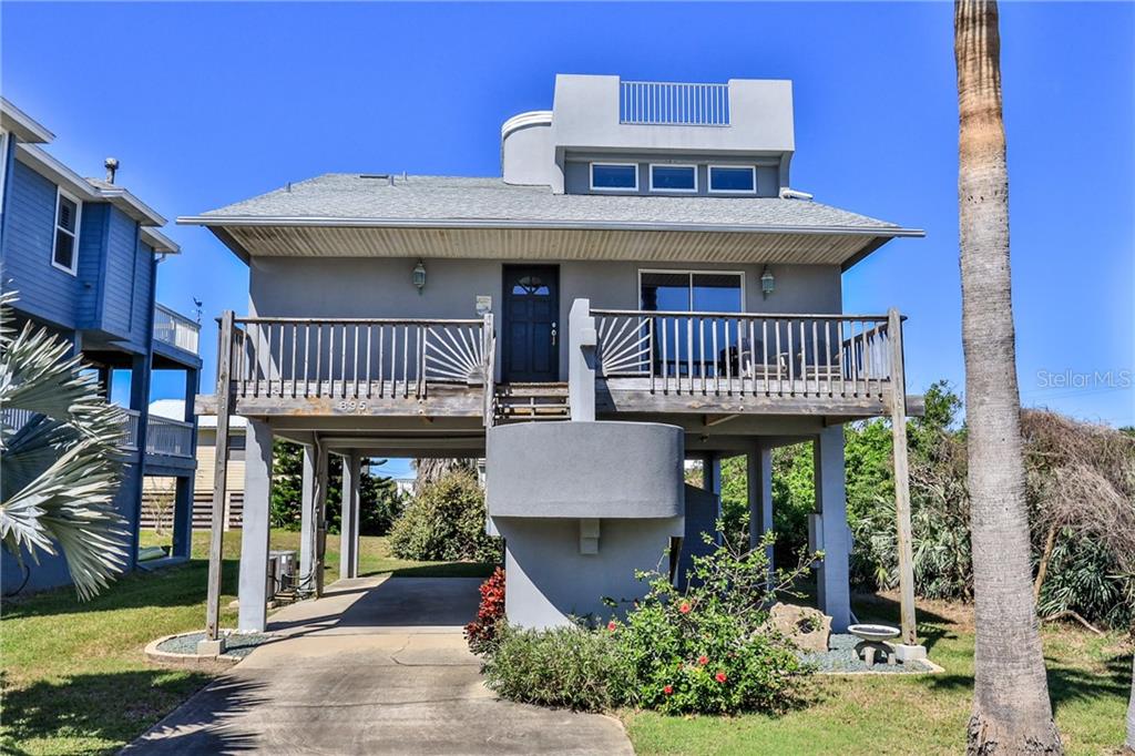 River views and ocean views of the no drive beach with indoor balconies and viewing decks to catch the early morning sunrise or glamorous evening sunsets. this is an extremely unique home with kevin switzer details of curves and open living. special features are bamboo floors, oak staircase, vaulted ceilings with remote controlled blinds, 2016 roof and 32x16 top deck patio. there is also a 100 foot storage shed. you'll get more for your money with this sensibly priced beach home, with its scenic views and vacation location. truly a real find, as values like this sell quickly.Single Family House 2 bedrooms - BETHUNE VOLUSIA BEACH