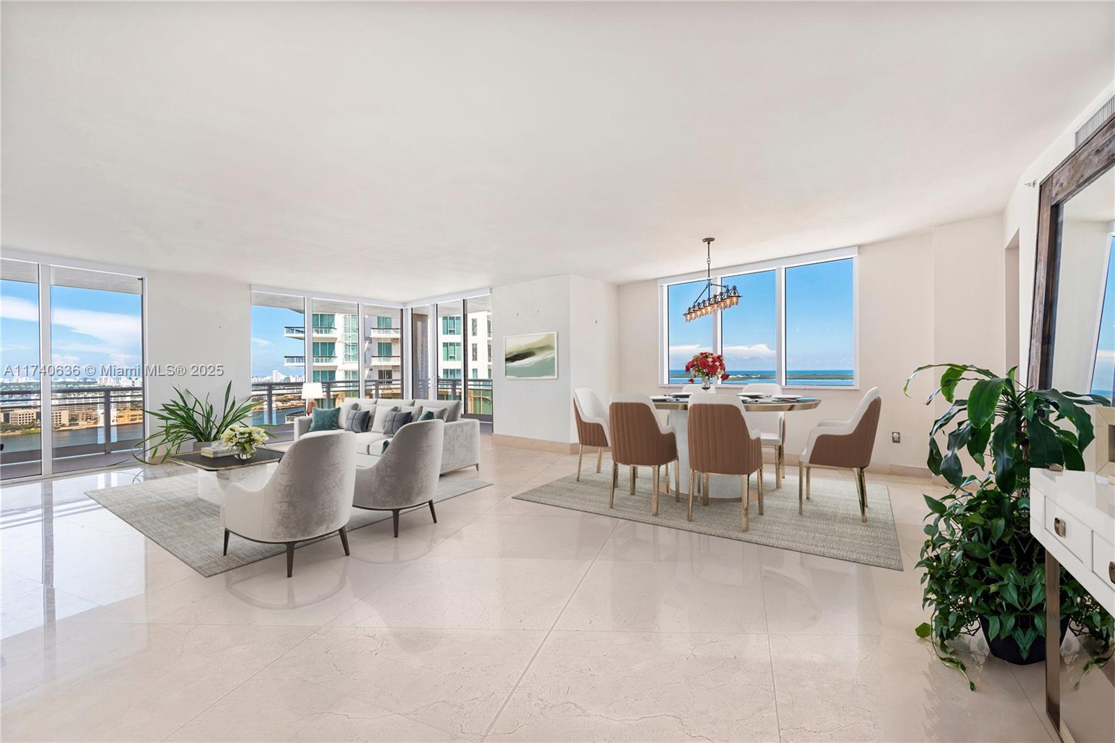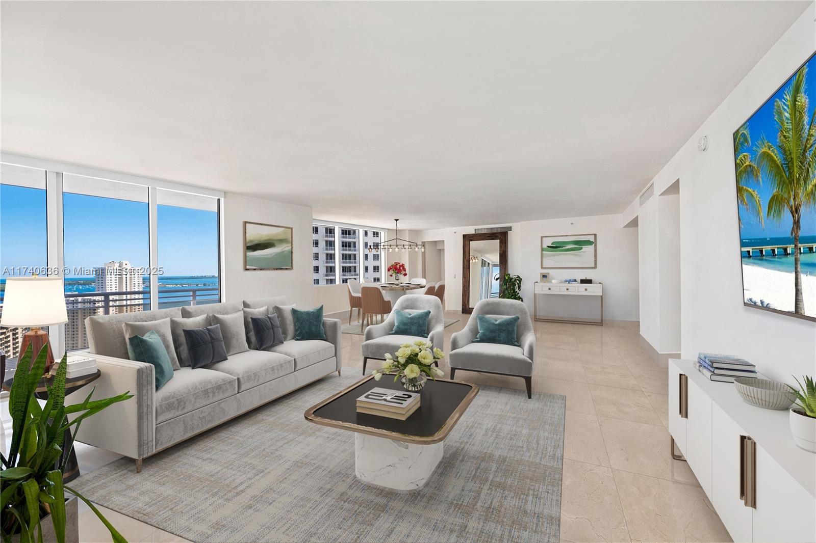 Welcome to brickell key living at it's finest! enjoy expansive water & skyline views from this luxurious 4bd/4.5ba corner residence in the acclaimed carbonell condominium. offering breathtaking water views, a large wraparound balcony, marble floors throughout, a chefs-style eat in kitchen, wine cooler, full laundry room, & spacious bedrooms all w/ ensuite baths, floor-to-ceiling windows, & california closets. 2 assigned parking spaces & 1 storage. amenities at this luxury full service building include a bi-level fitness center, heated 30-meter infinity edge pool, tennis, concierge, 24hr valet & security. available march 24th, 2025. please note: photos are virtually staged with furniture.Condo Apartment 4 bedrooms - CARBONELL CONDO