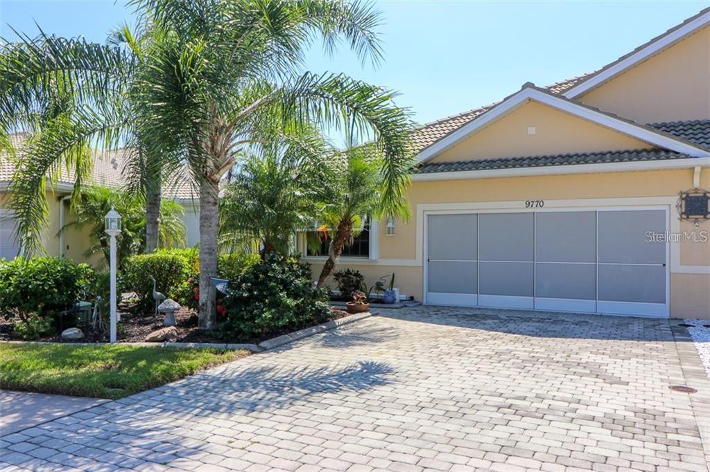 Talon bay - maintenance free living at it's best. many custom features have been added to this well cared for home. outside you will notice the manicured landscape, full screen on the garage, accordion hurricane shutters and tranquil water few. the screened front door enclosure leads you to a beautiful glass front door. inside, from the porcelain tile to the crown molding you will be taken back with the attention to detail. the kitchen boasts granite counters, stainless steel appliances, a large composite sink and wood cabinets with a custom color. the large island lends itself to a casual meal or the space desired to entertain. the dining room offers space for a large table and buffet. notice the stainless lighting fixtures throughout this space. the living room with ceiling fan is perfect for tv, reading, hosting guests, or enjoying the serene view outside. looking for florida living at its best, look no farther than the extended lanai surrounded my manicured landscaping and overlooking the pond. the master bedroom has an expansive walk-in closet, bath with double vanity and walk in shower. the split bedroom floor plan allows your guests plenty of privacy. the guest bath has tile to the ceiling and a glass block shower wall. don't miss the third bedroom currently being used as a home office. the community offers a clubhouse, fitness room, library, activities, community pool, tennis courts and canoe/kayak launch, all conveniently located close to beaches, shopping and entertainment.Villa 3 bedrooms - TALON BAY