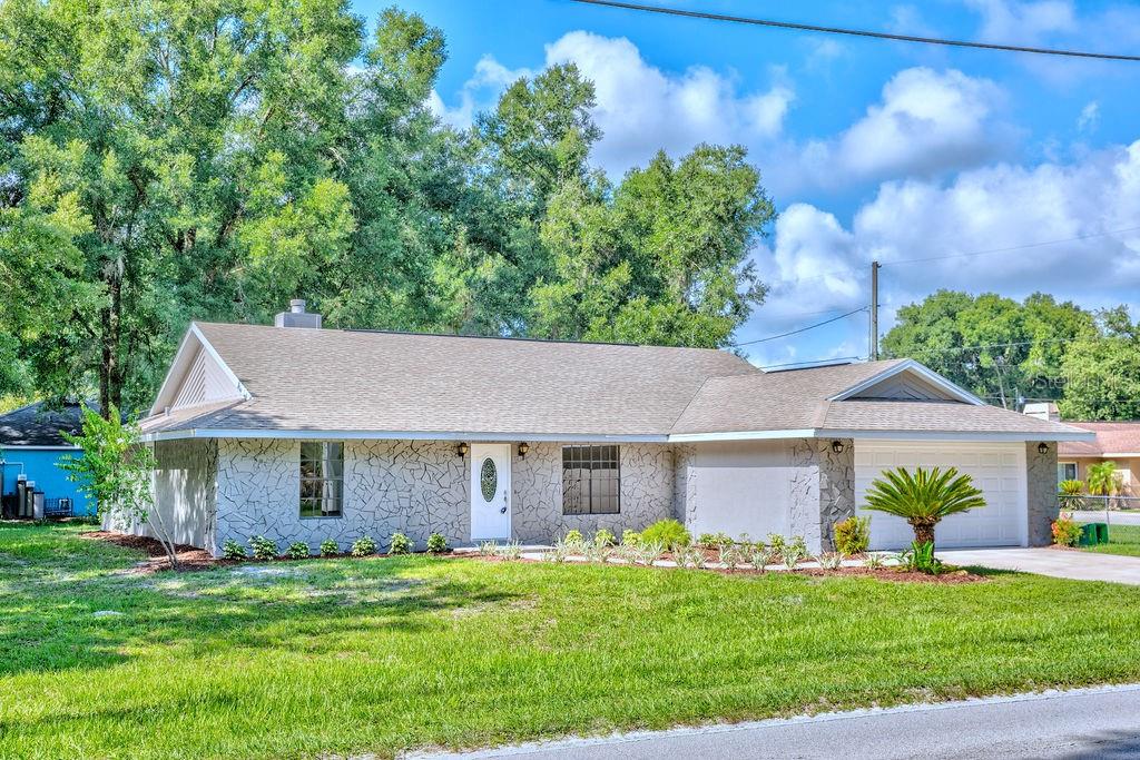 Wow this home is beautiful. just remodeled, move in ready. situate on an oversized corner lot with approx. .48 acres. new top of the line shaw lifetime luxury vinyl plank in the foyer, family room, living room and kitchen. all new led lighting fixtures. new samsung stainless steel appliances. the kitchen and both bathrooms have granite countertops. the back porch has stained tongue and grove ceiling and lvp flooring. a must see...Single Family House 3 bedrooms - ORANGE CITY DELAND FARMS
