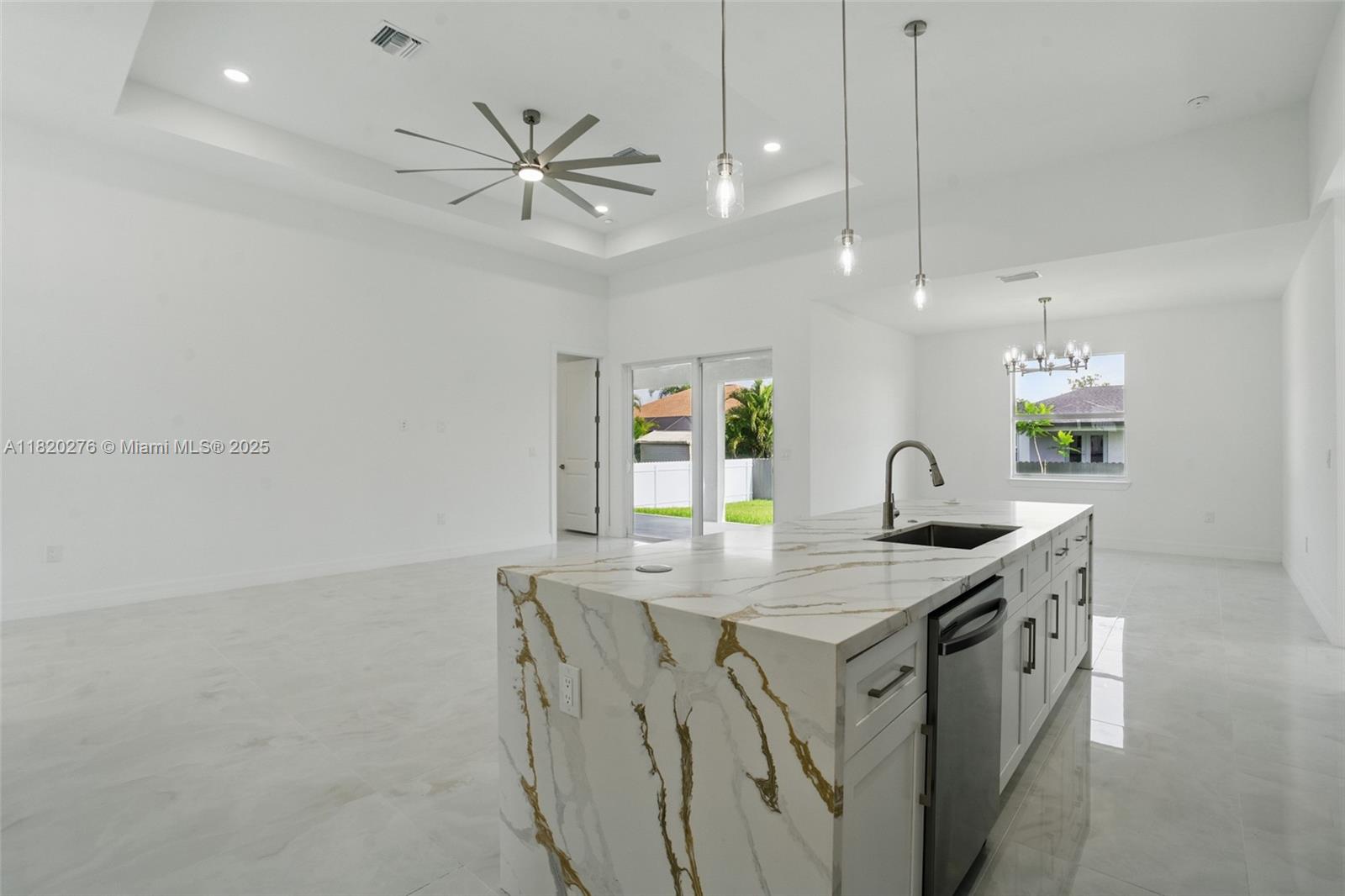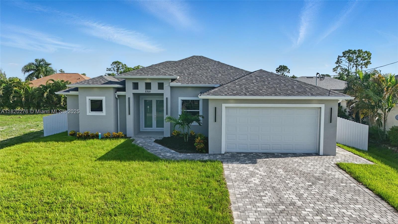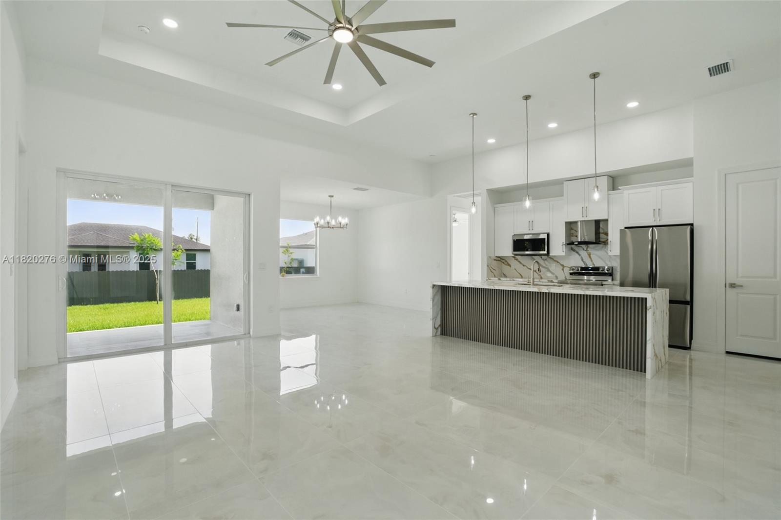 Gorgeous new construction in cape coral, fl! this nearly 1,800 sqft home offers spacious living with high tray ceilings, imported tile, and abundant natural light. the modern kitchen boasts quartz countertops and high-end appliances, including washer & dryer. enjoy 3 bedrooms, 2 full baths, and a versatile den ideal for an office or playroom. the primary suite features a soaking tub, and the home includes impact windows, a large laundry room, and a 2-car garage with side access. the fenced yard offers space for a pool. no hoa and not in a flood zone! built by a trusted local builder near del prado blvd, top schools, and shopping.Single Family House 3 bedrooms - CAPE CORAL