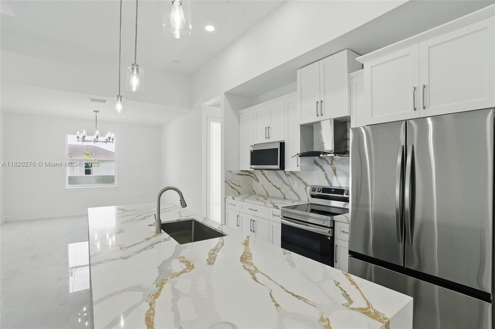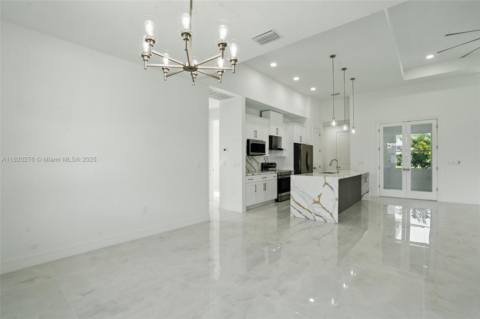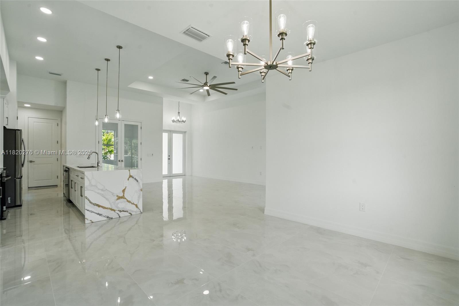 Gorgeous new construction in cape coral, fl! this nearly 1,800 sqft home offers spacious living with high tray ceilings, imported tile, and abundant natural light. the modern kitchen boasts quartz countertops and high-end appliances, including washer & dryer. enjoy 3 bedrooms, 2 full baths, and a versatile den ideal for an office or playroom. the primary suite features a soaking tub, and the home includes impact windows, a large laundry room, and a 2-car garage with side access. the fenced yard offers space for a pool. no hoa and not in a flood zone! built by a trusted local builder near del prado blvd, top schools, and shopping.Single Family House 3 bedrooms - CAPE CORAL