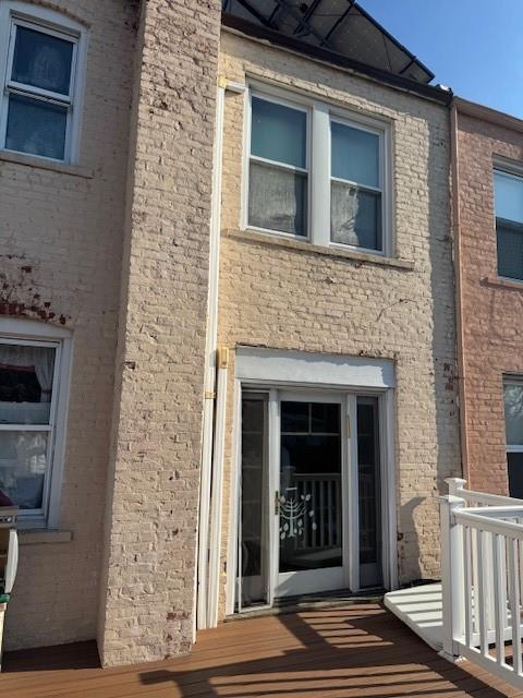 Prime omb location. solid brick single family 3 bedroom duplex & 2 bath home with parking. the main floor features a bright open living room with dining room, and open concept kitchen. hardwood flooring. sliders off the dining room lead to a large beautiful deck, with stairs to rear parking and yard. sun drenched rooms throughout. the second floor has 3 x-large bedrooms: king master, king/queen 2nd, and full-size 3rd, all with closets and a full bathroom. the finished basement is perfect for additional space as well as for recreational use, with a 1/2 bath, laundry area with washer and dryer, and a recreational room. w/ direct access to the rear yard. private parking is accessible through a community driveway. the home is move-in ready, clean, and solid. all mechanics in working order. as-is. easy shopping , transportation and restaurants. this home will not last! all offers will be considered.Single Family House 4 bedrooms -